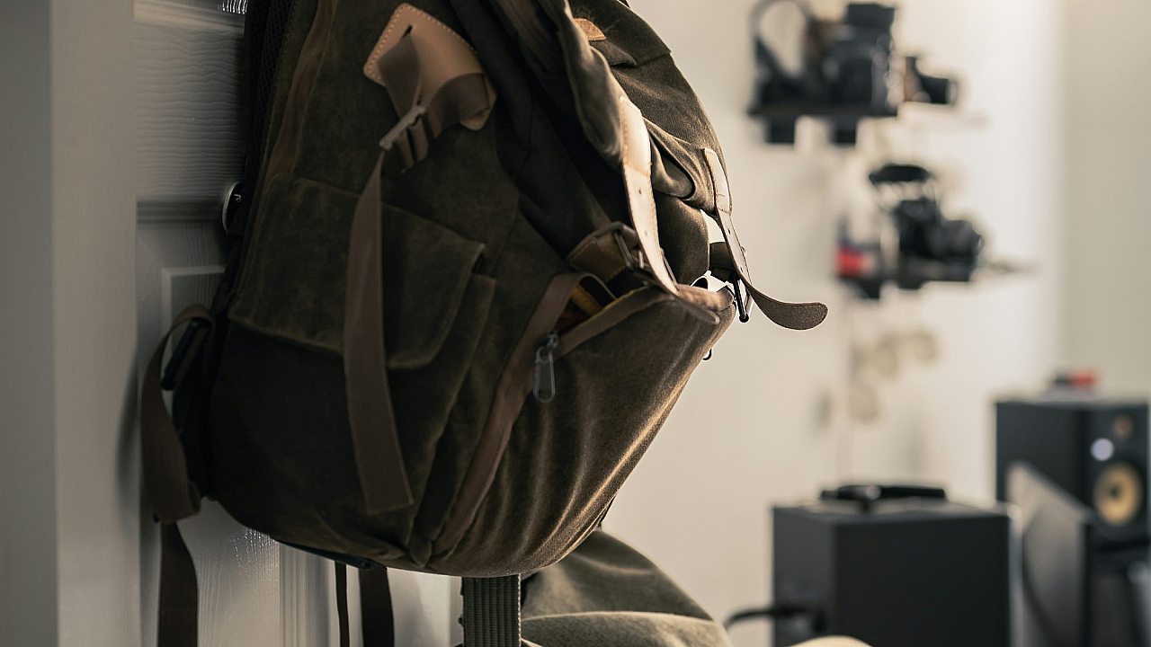 Wallpaper A Backpack on a Wall