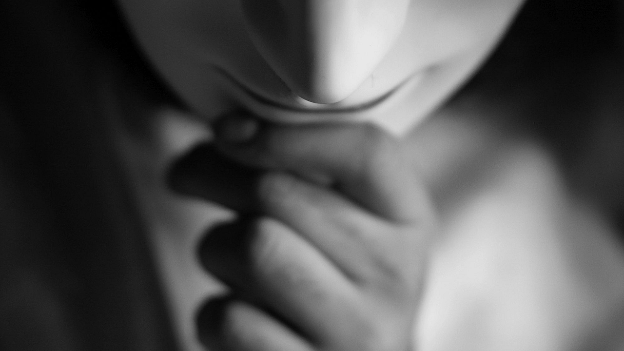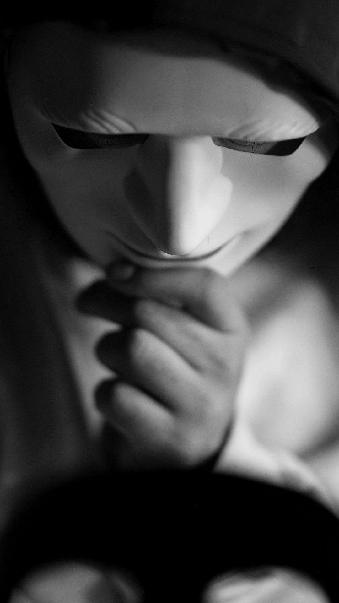 Keywords: black and white, woman, face, covering, hiding, monochrome, portrait, mysterious, secretive, anonymous, shadow, emotion, feeling, sadness, concealed