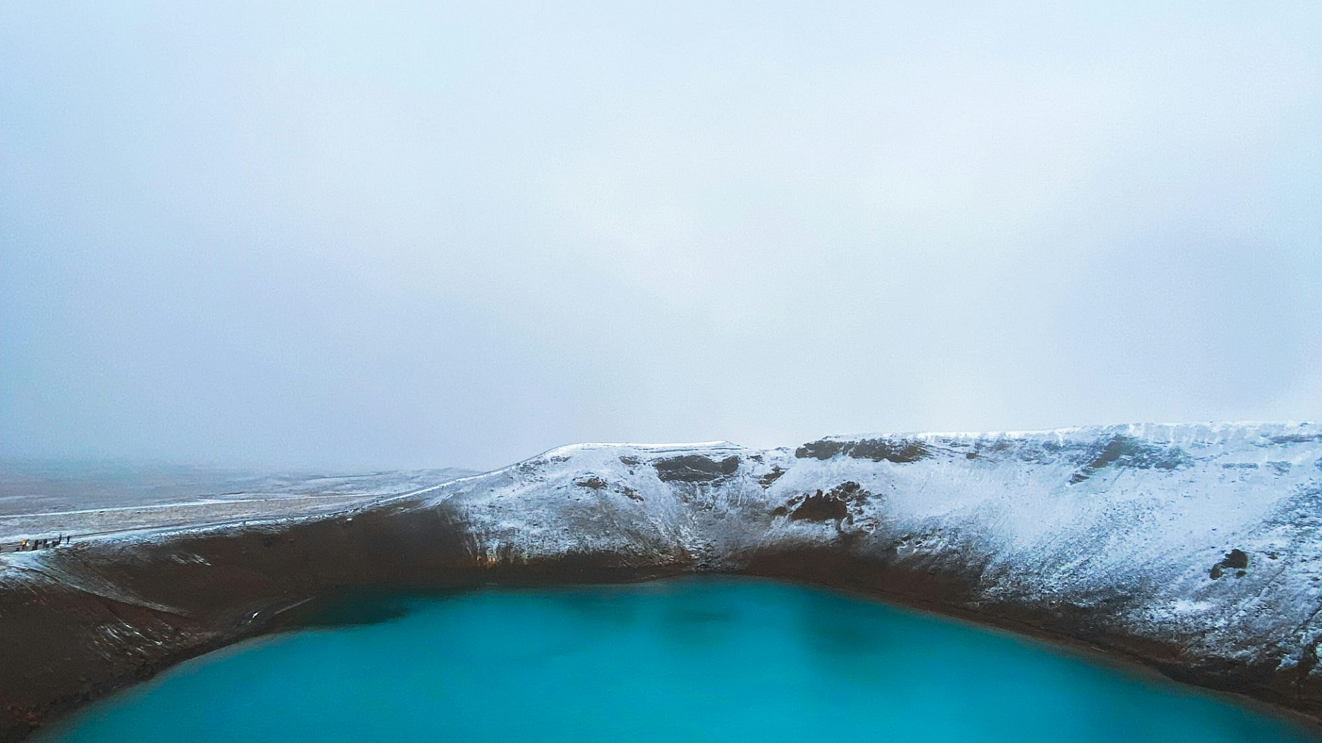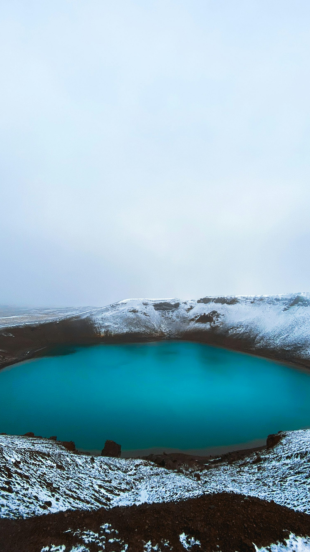 Keywords: blue lake, snow covered hills, winter landscape, snowy mountains, serene, tranquil, peaceful, cold, frozen, icy, mountain lake, alpine lake, nature wallpaper, winter wonderland, landscape photography