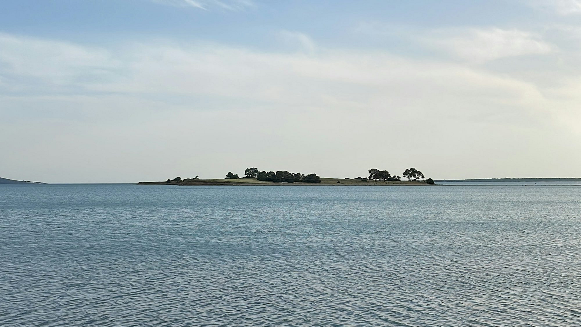 body of water, island, ocean, sea, lake, water, small island, distant island, landscape, scenery, seascape, nature, calm, peaceful, serene
