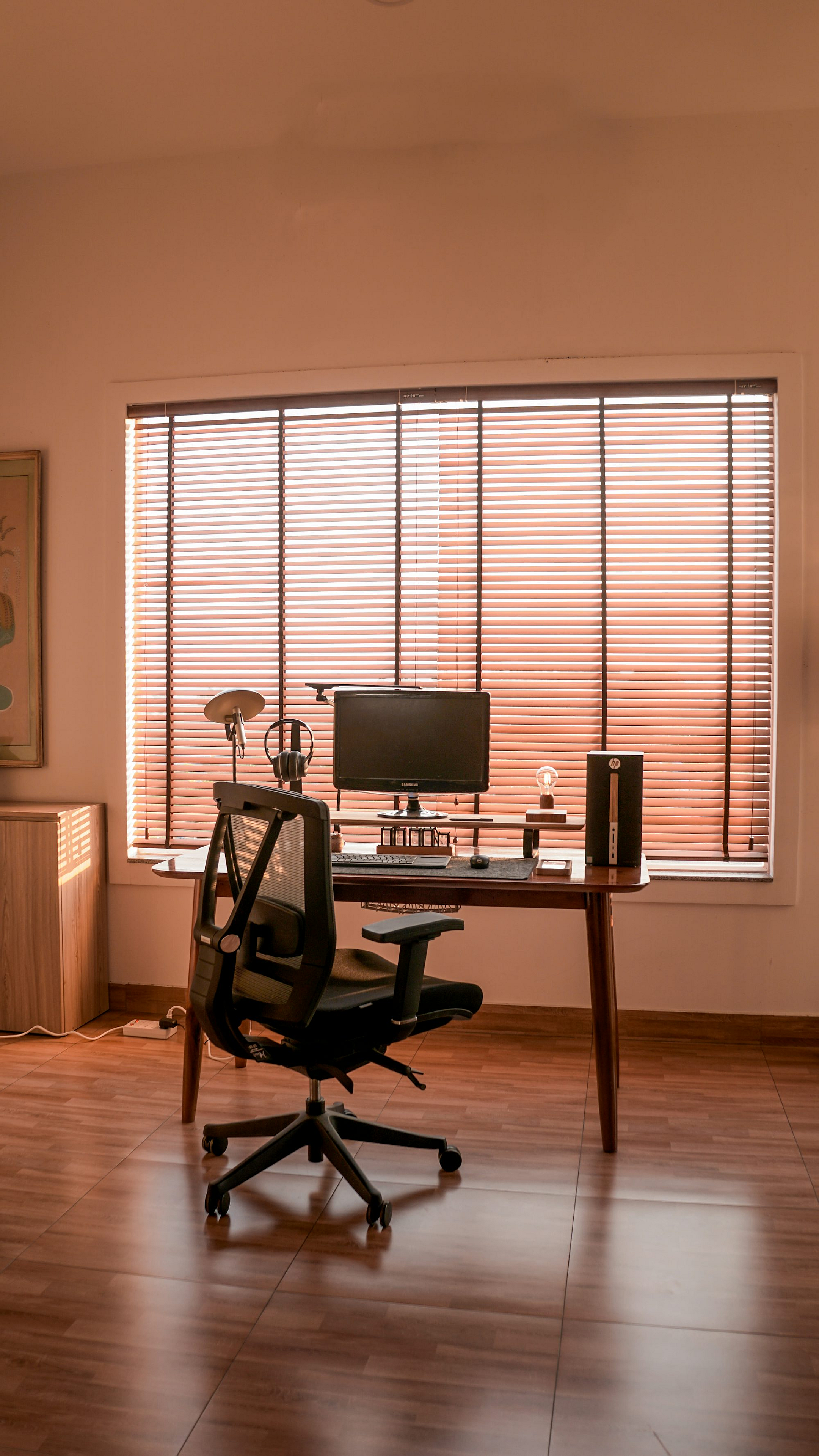 chair, computer desk, office chair, desk chair, workstation, computer setup, home office, workspace, study, office, sitting, furniture, interior design, background, wallpaper