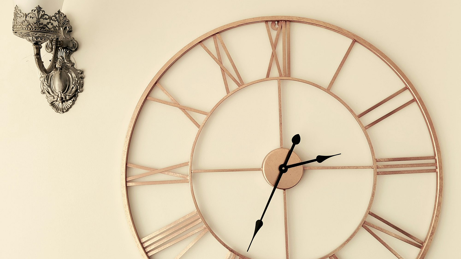 Wallpaper A Clock on a Wall Next to a Wall Sconce