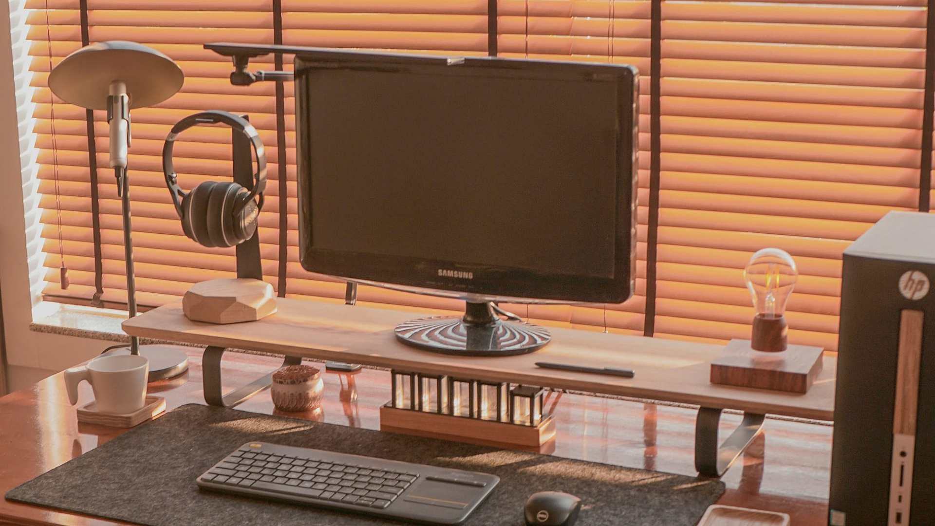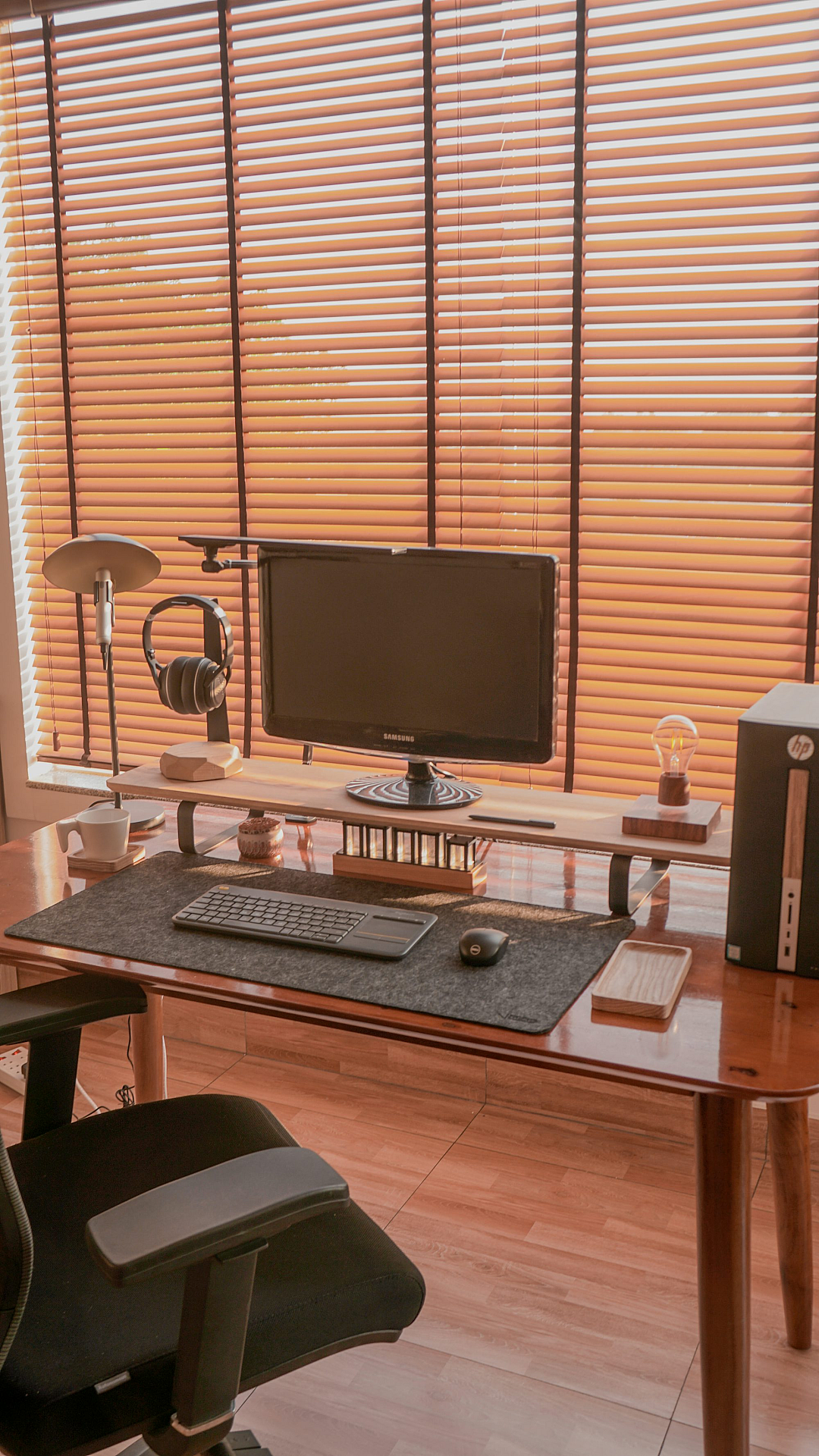 Keywords: computer desk, monitor, keyboard, mouse, workspace, setup, office, home office, technology, digital, desktop, computer background, workstation, work from home, productivity