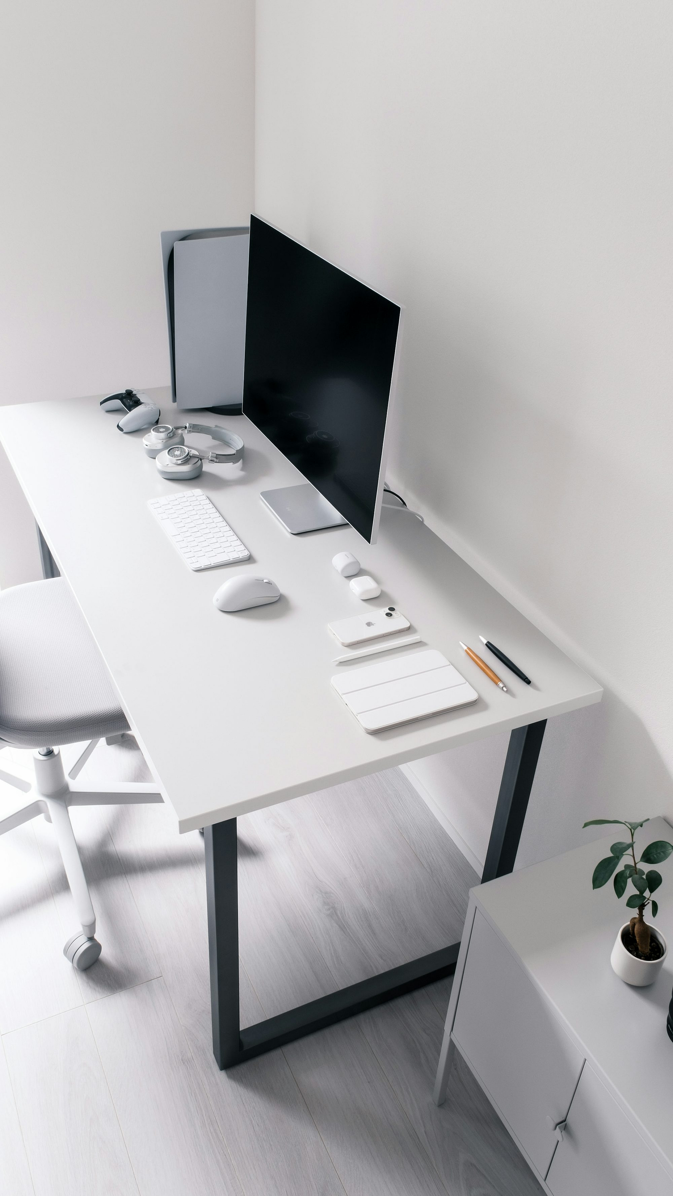 This wallpaper features a captivating image of a desk, complete with a computer and a comfortable chair. The scene is perfect for those seeking a clean, organized, and productive workspace aesthetic. The image’s composition is meticulously crafted to emphasize the functionality and style of the setting.