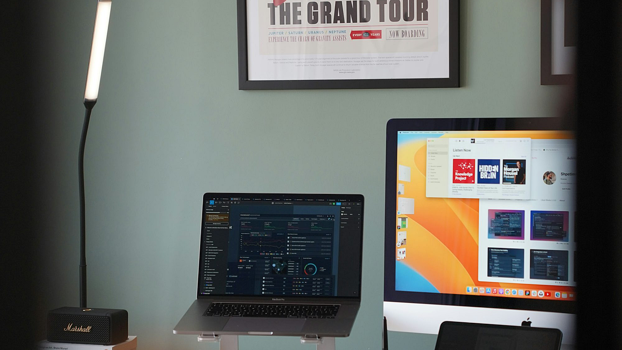 desk, monitor, keyboard, laptop, computer, workspace, office, technology, digital, screen, setup, workstation, home office, electronics, computing