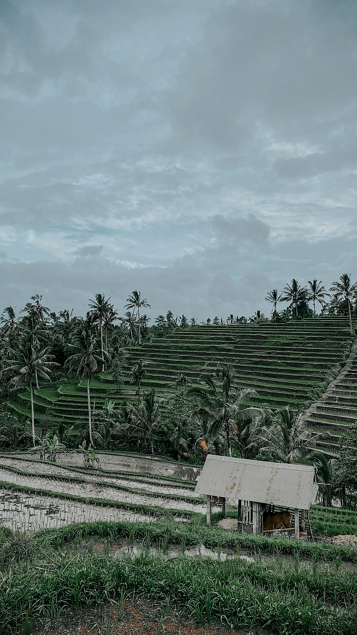 This stunning wallpaper features a picturesque house nestled in the heart of a vast and verdant rice field. The image evokes a sense of tranquility and serenity, showcasing the beauty of rural life.
