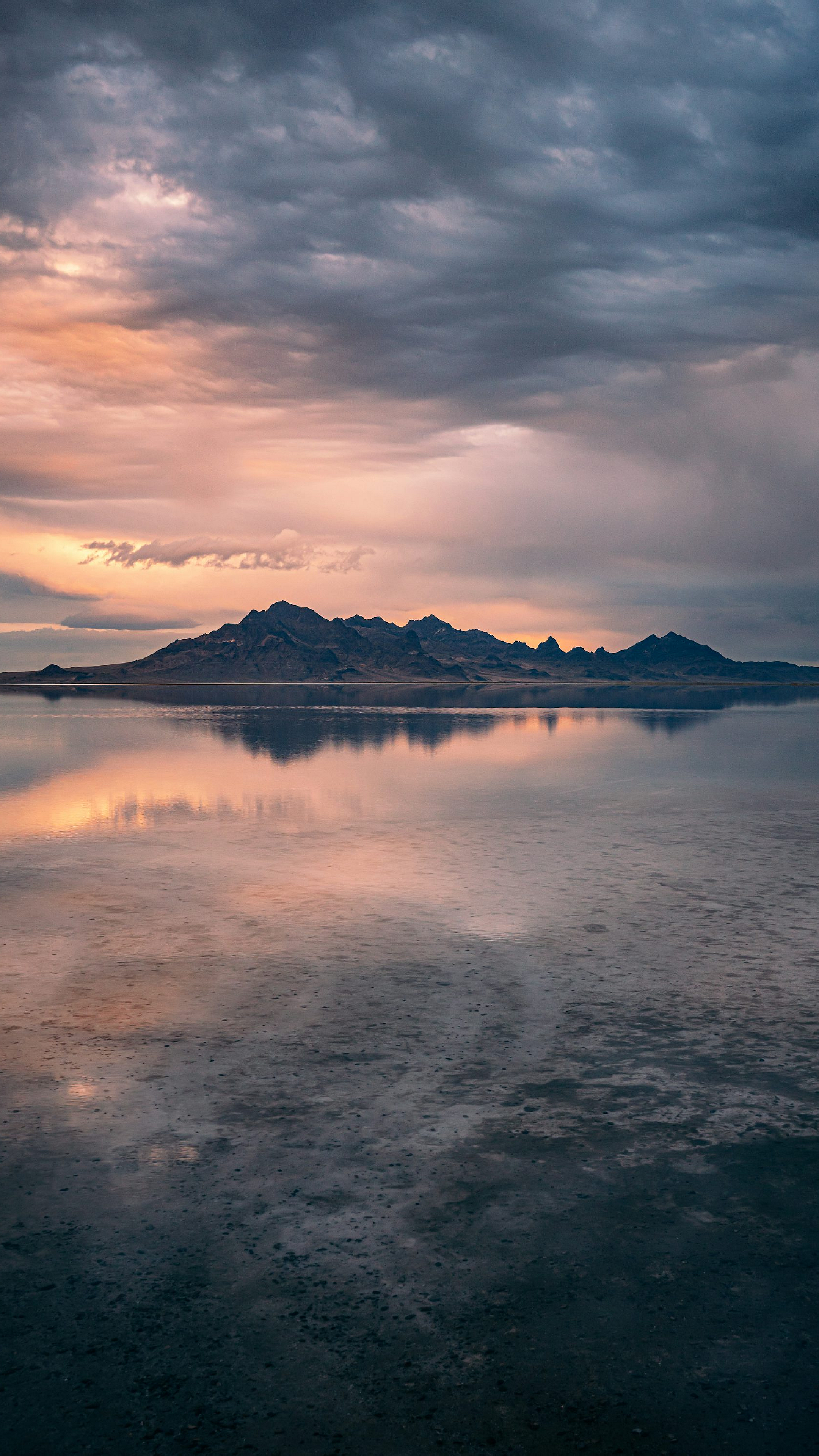 This wallpaper features a breathtaking view of a large body of water under a dramatic cloudy sky. The vast expanse of water is beautifully contrasted by the brooding atmosphere created by the clouds above. The image evokes a sense of tranquility and serenity, making it a perfect choice for those seeking a peaceful and calming desktop background.