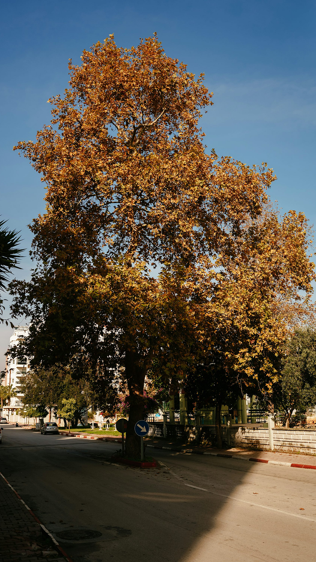 Keywords: large tree, street tree, road tree, tree in street, tree on road, massive tree, huge tree, city tree, urban tree, nature in city, asphalt, pavement, road, street, urban landscape, gigantic tree