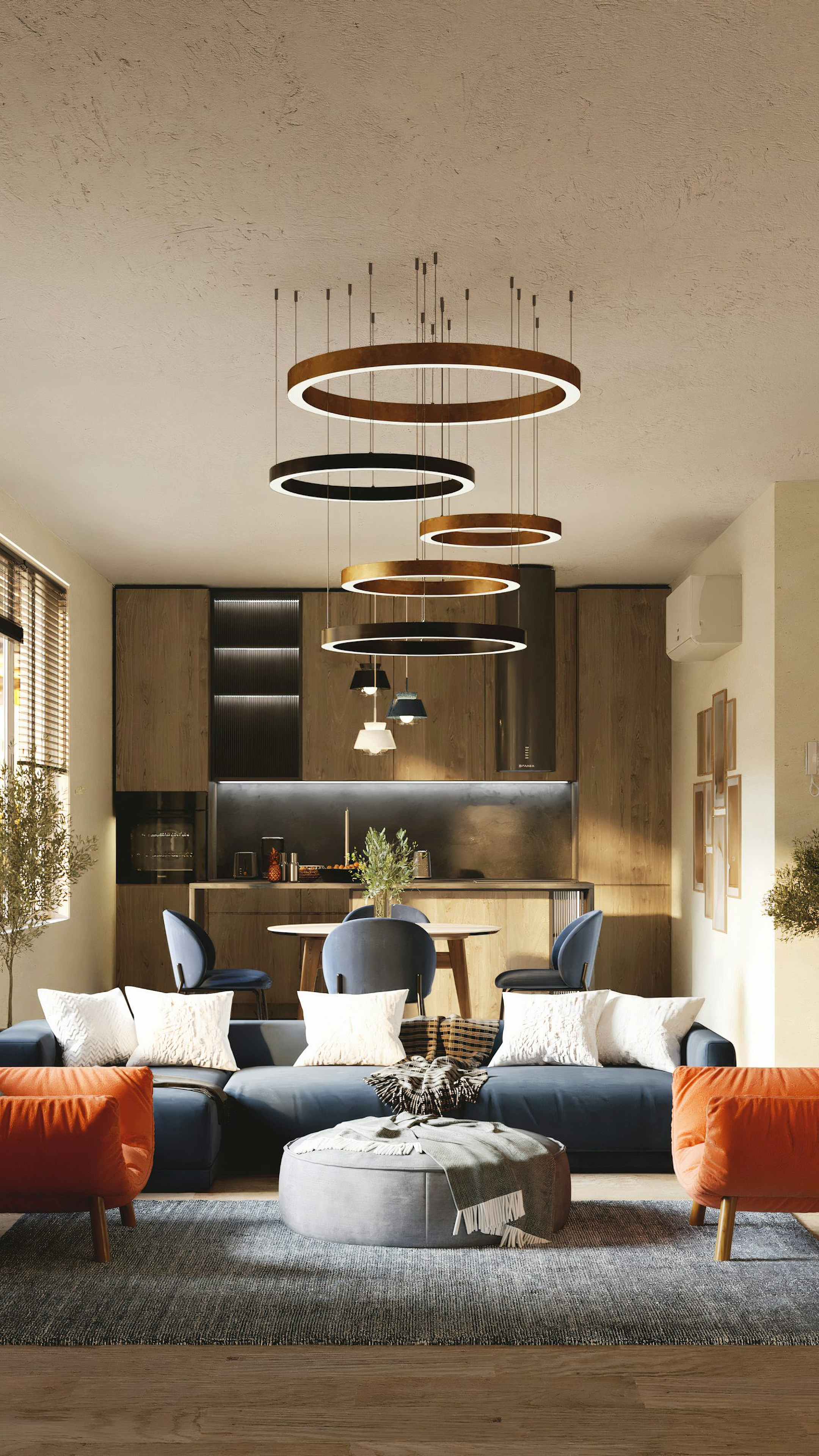 a living room filled with furniture and lots of windows