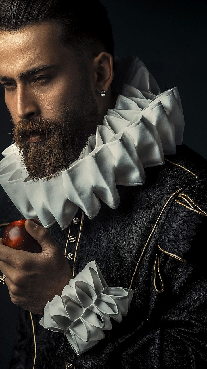 This wallpaper is perfect for those seeking a minimalist yet meaningful image to personalize their digital devices. The subtle symbolism of the apple, a recurring motif in art and literature, adds depth and intrigue to the overall aesthetic. The focus on detail, particularly the texture of the beard and the skin, adds a layer of realism and visual richness. It’s a perfect choice for anyone appreciating natural beauty and thoughtful imagery.