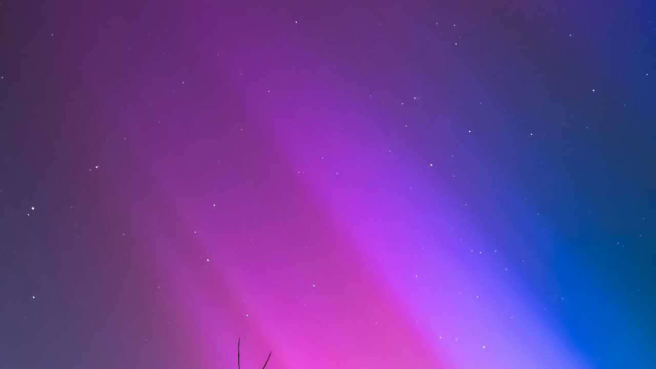 Wallpaper A Purple and Blue Sky with a Tree in the Foreground