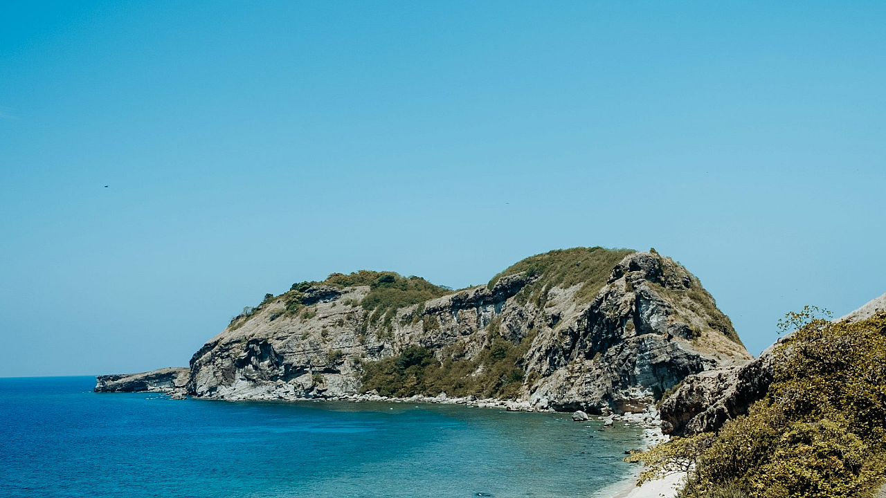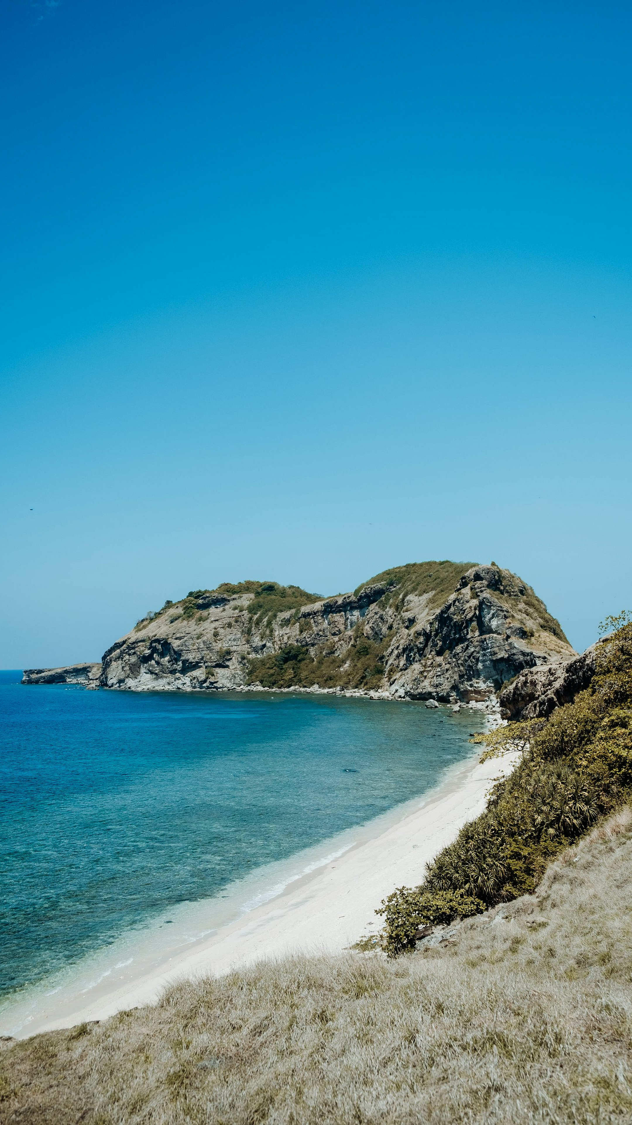 sandy beach, beach, island, ocean, sea, coast, shoreline, tropical, paradise, landscape, seascape, water, sand, distant island, calm sea