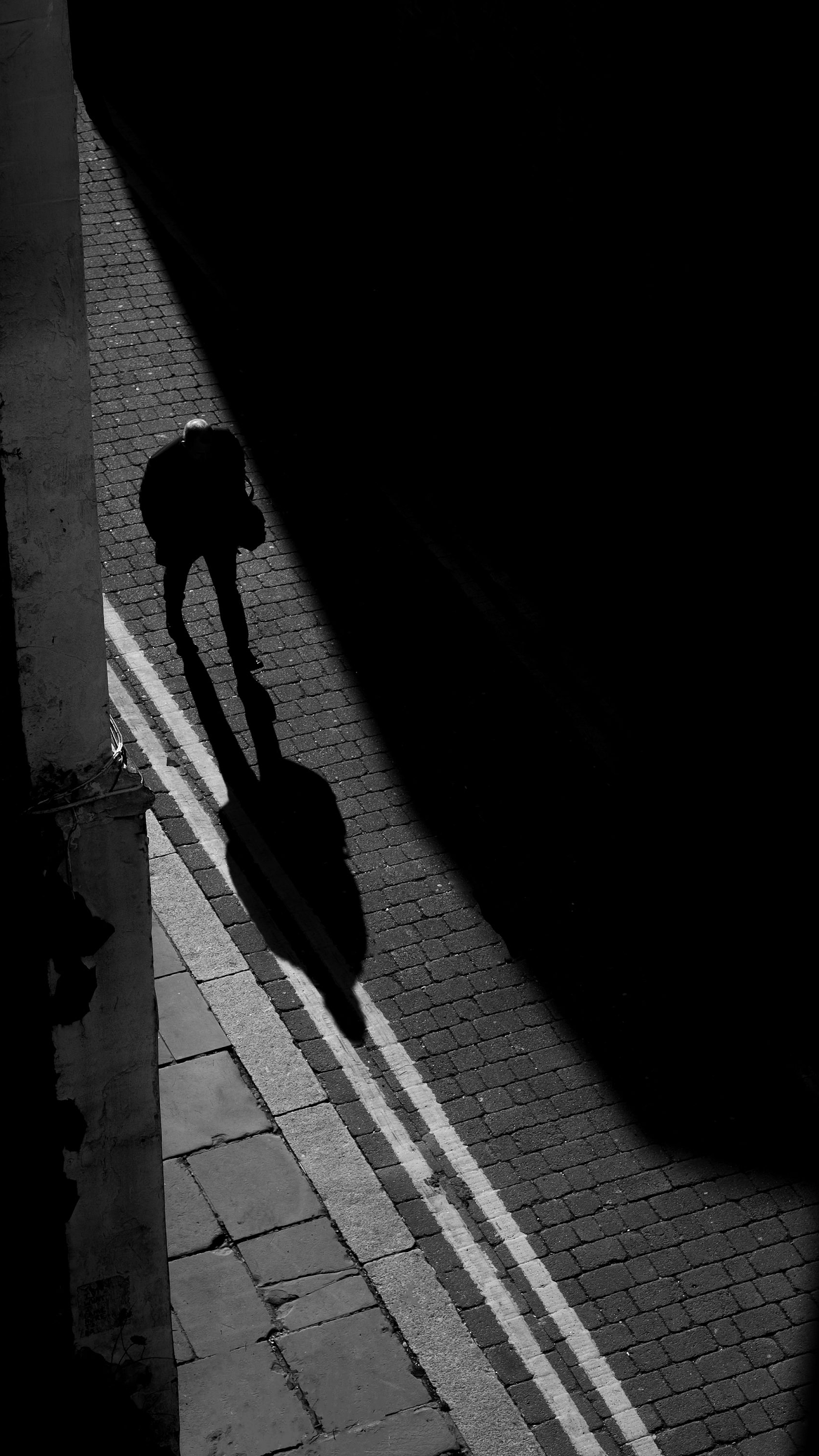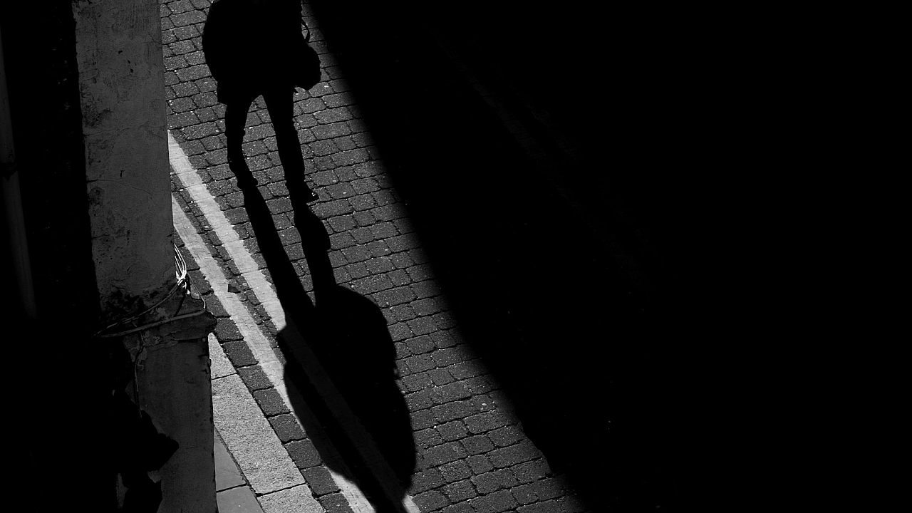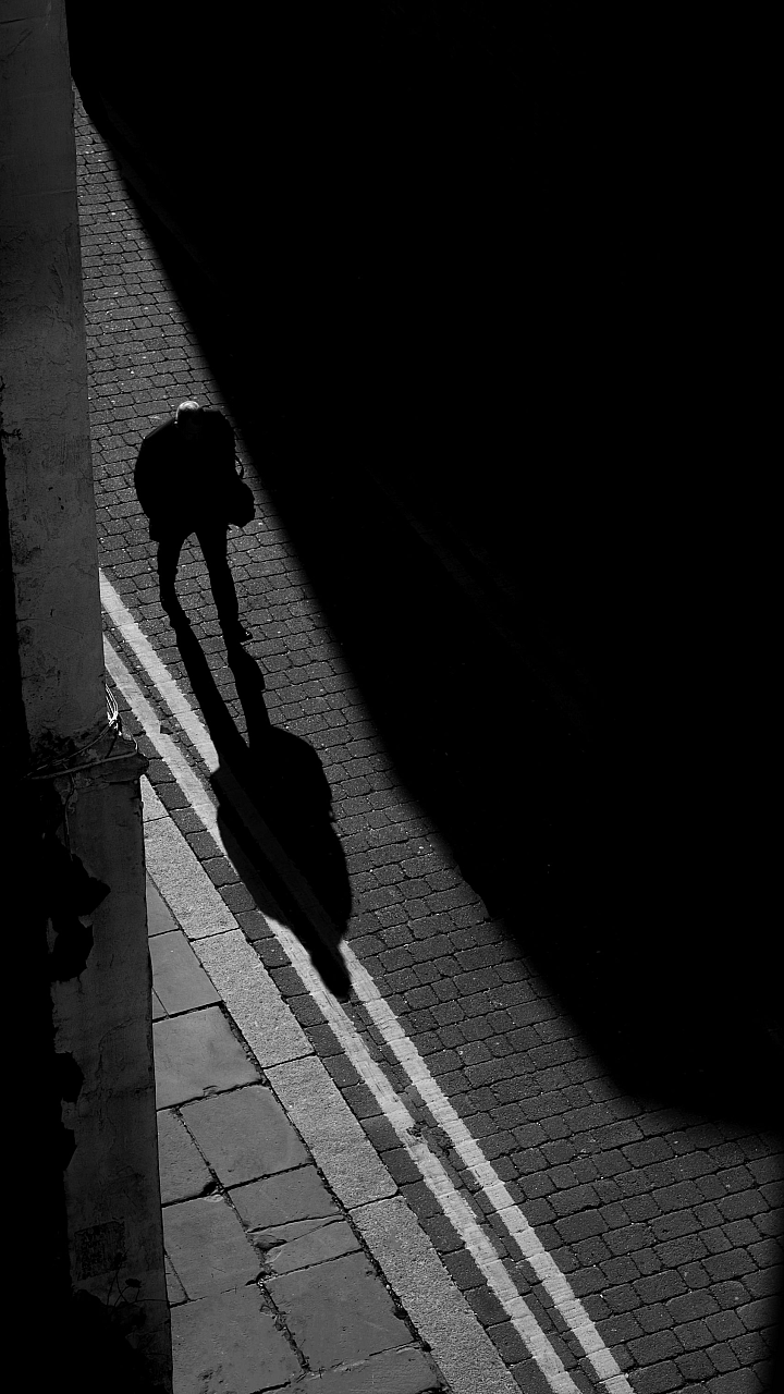shadow, person, walking, street, city, urban, dark, mystery, silhouette, lone, solitary, night, atmosphere, mood, path