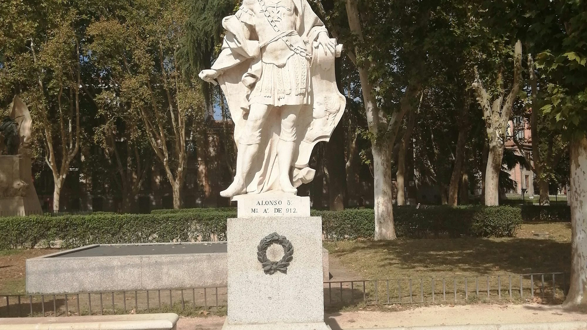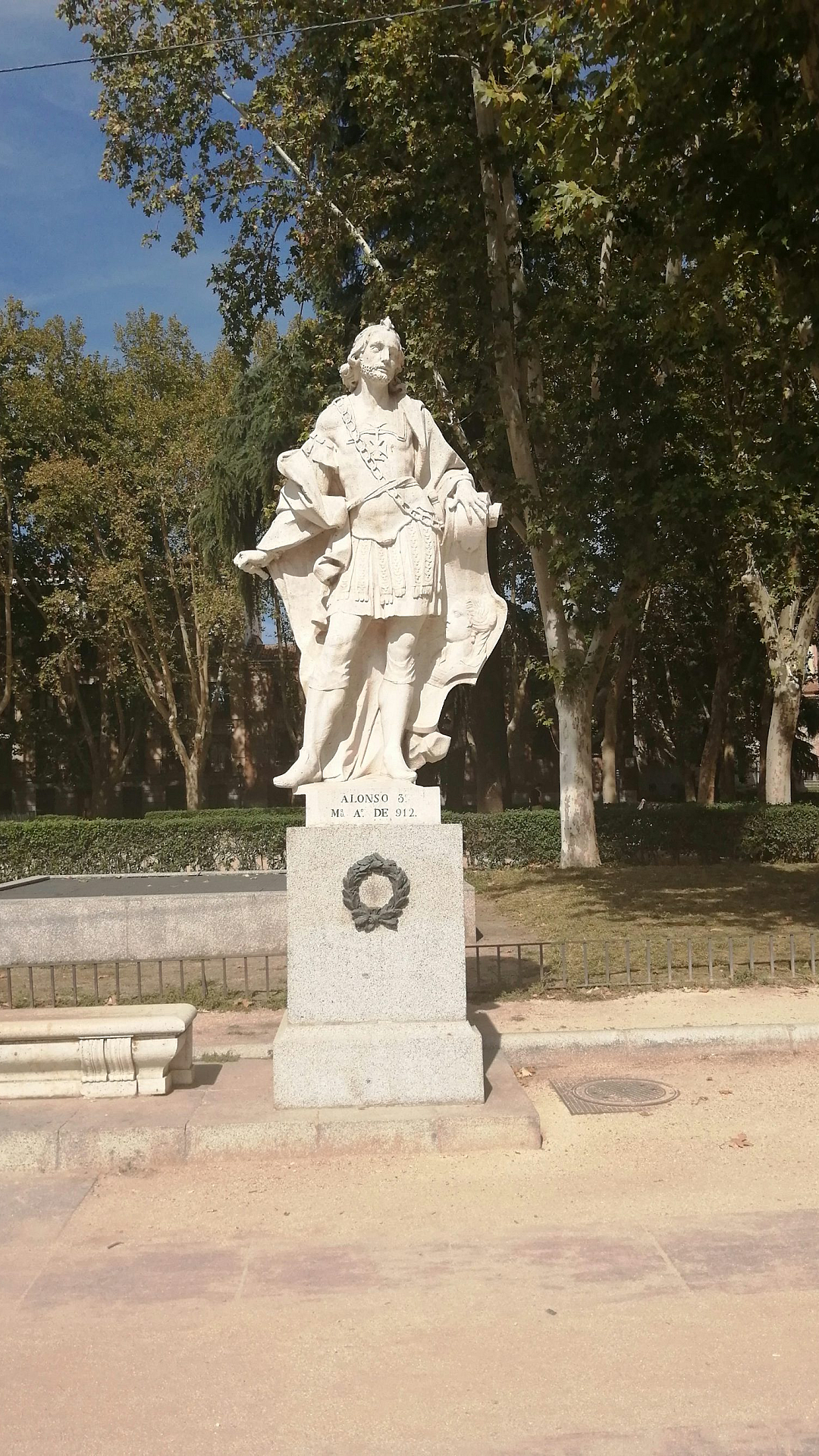 The statue itself is a captivating subject, with its detailed craftsmanship and the intriguing pose of the man. The contrast between the statue’s likely dark color and the bright white pedestal further enhances the visual appeal.