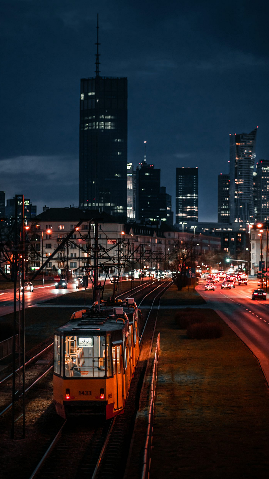 train, railway, tracks, night, city, urban, travel, journey, speed, motion, lights, dark, landscape, scenery, transportation
