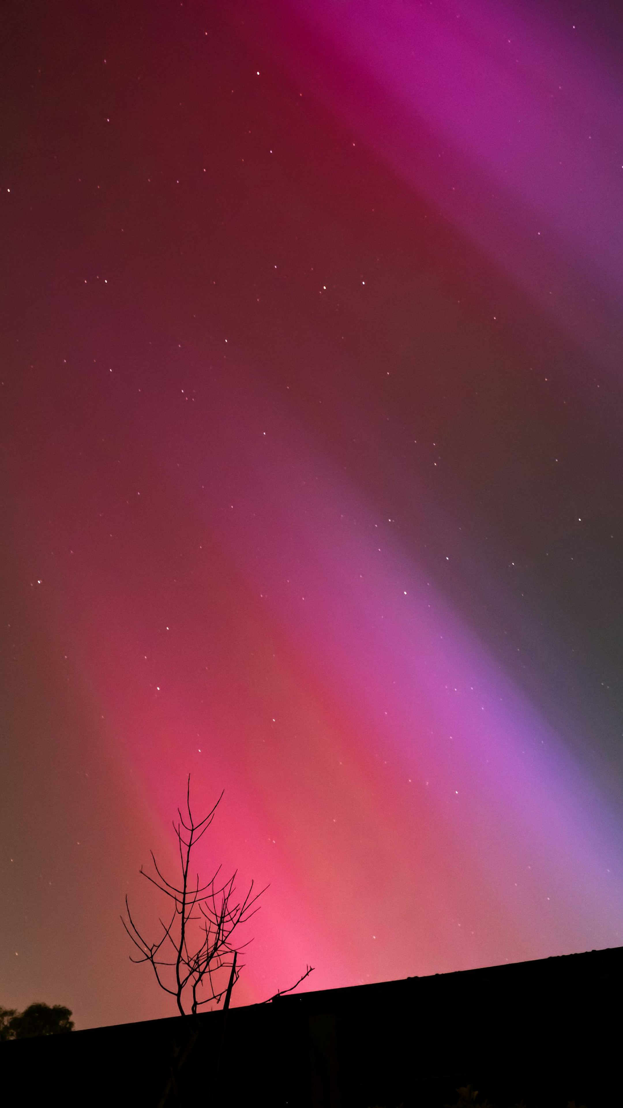 Keywords: bare tree, leafless tree, winter tree, purple sky, pink sky, twilight sky, sunset sky, sunrise sky, vibrant sky, colorful sky, nature wallpaper, landscape wallpaper, scenic wallpaper, tree silhouette, minimalist wallpaper