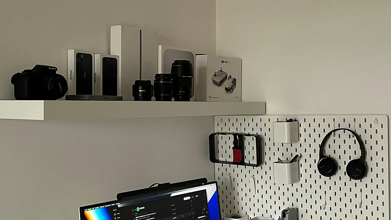 Keywords: white desk, computer, desktop, minimalist, clean, workspace, office, technology, simple, modern, white background, computer setup, clean desk, organized, workstation