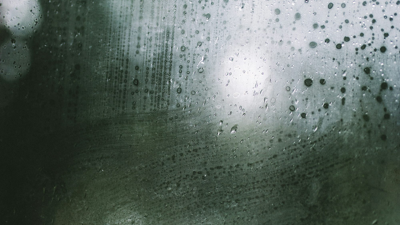 This wallpaper features a captivating image of a window with numerous raindrops clinging to its surface. The water droplets vary in size, creating a mesmerizing visual texture. The overall mood is serene and atmospheric, evoking feelings of tranquility and introspection. The soft light filtering through the glass enhances the beauty of the rain, creating a sense of depth and dimension.