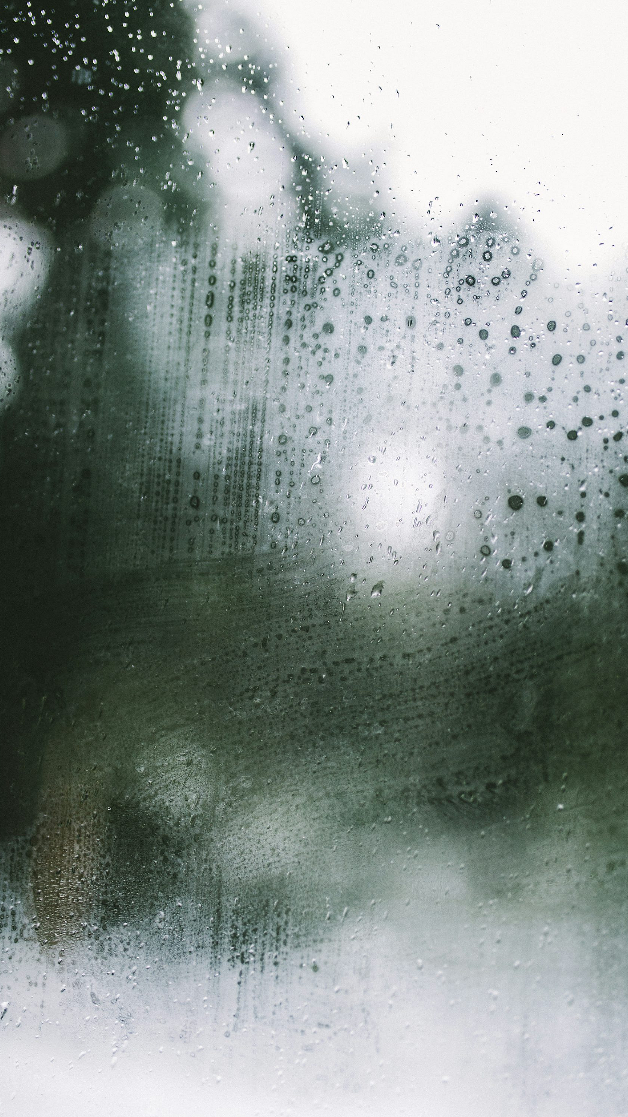 The wet surface of the windowpane reflects the surrounding environment in a blurred, dreamy way, adding to the ethereal quality of the image. The damp air and misty atmosphere are palpable, immersing the viewer in a moment of peaceful contemplation. Whether it’s a gentle drizzle or a heavier downpour, the image captures the essence of a rainy day in a visually stunning way. Perfect for those seeking a calming and aesthetically pleasing wallpaper.