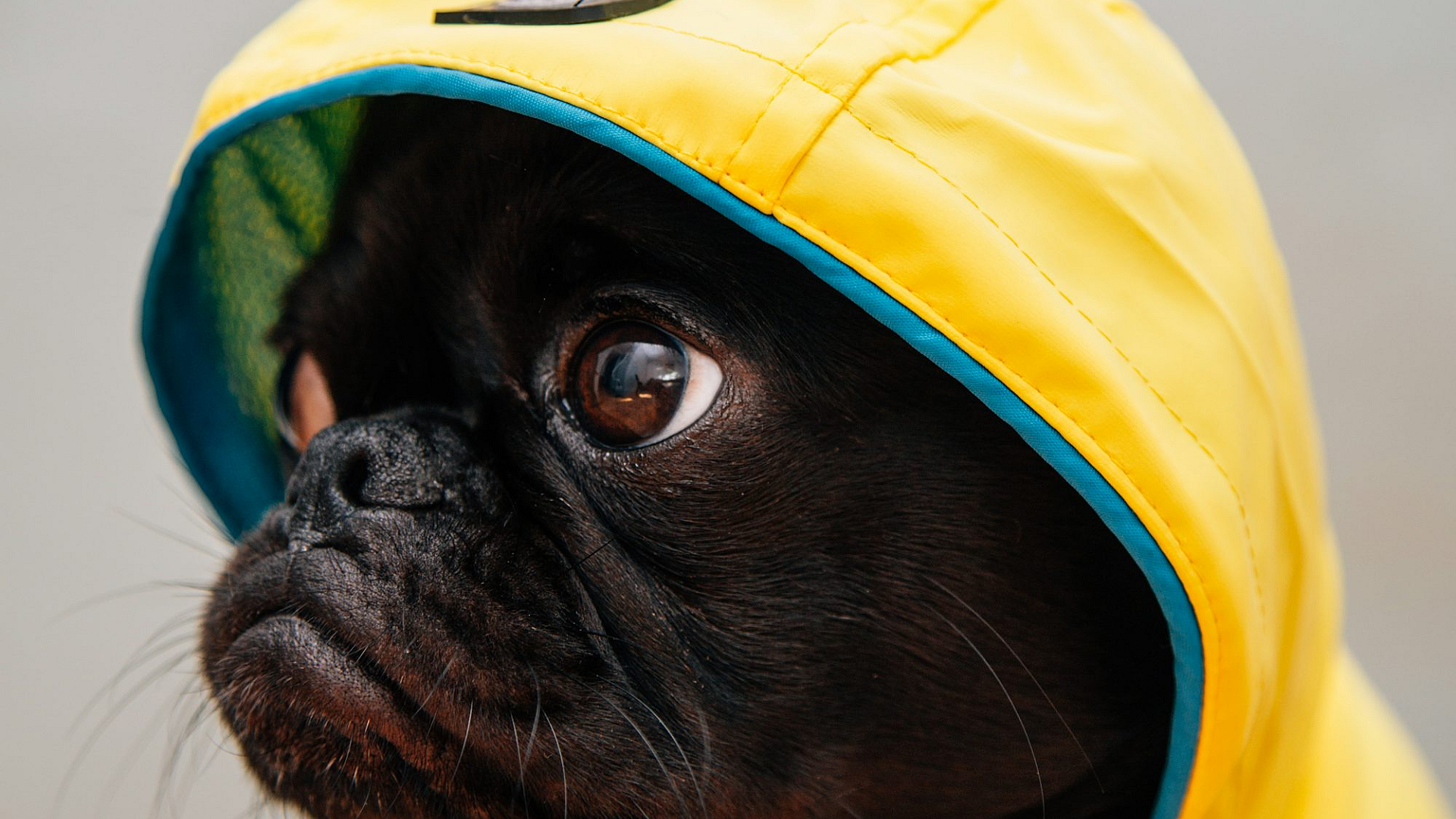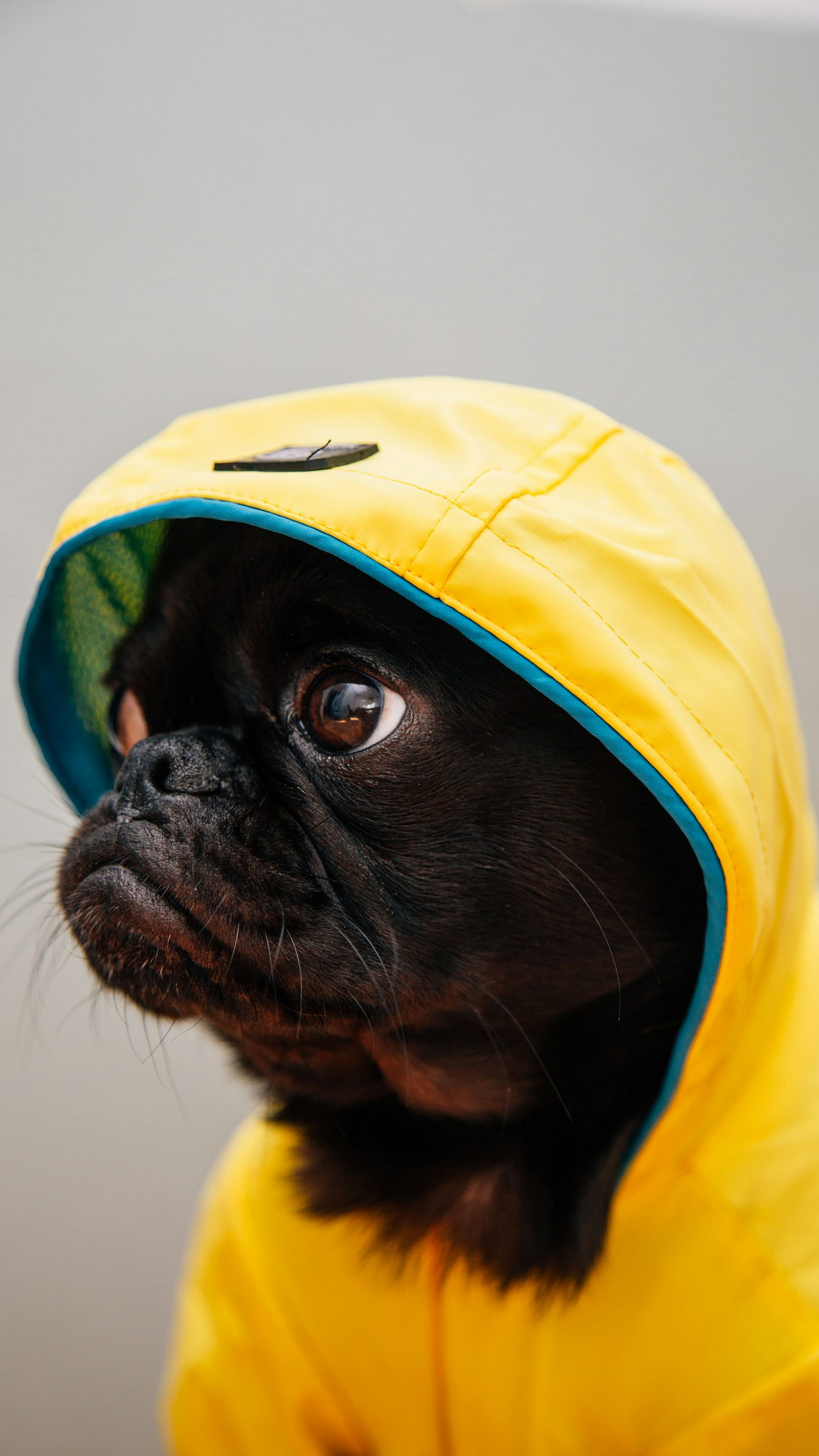adult black puppy, black puppy, puppy in raincoat, yellow raincoat, dog raincoat, raincoat puppy, black dog, puppy, dog, pet, canine, adorable, cute, wet dog, rainy day