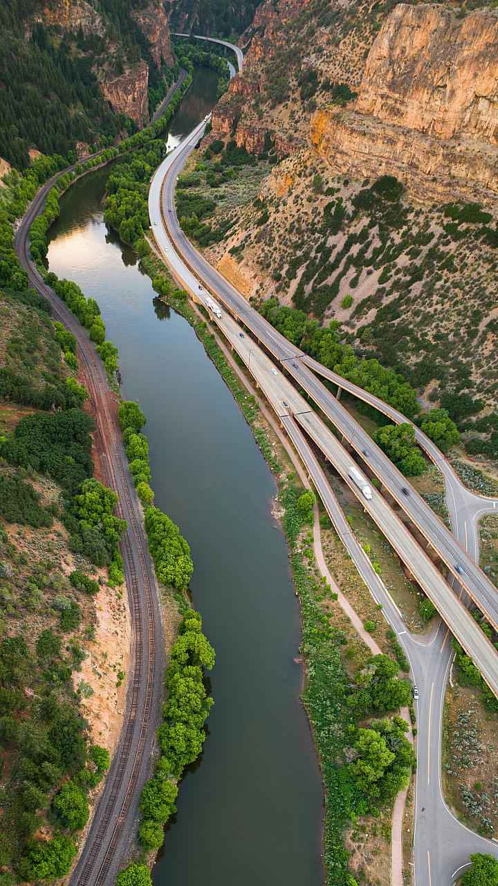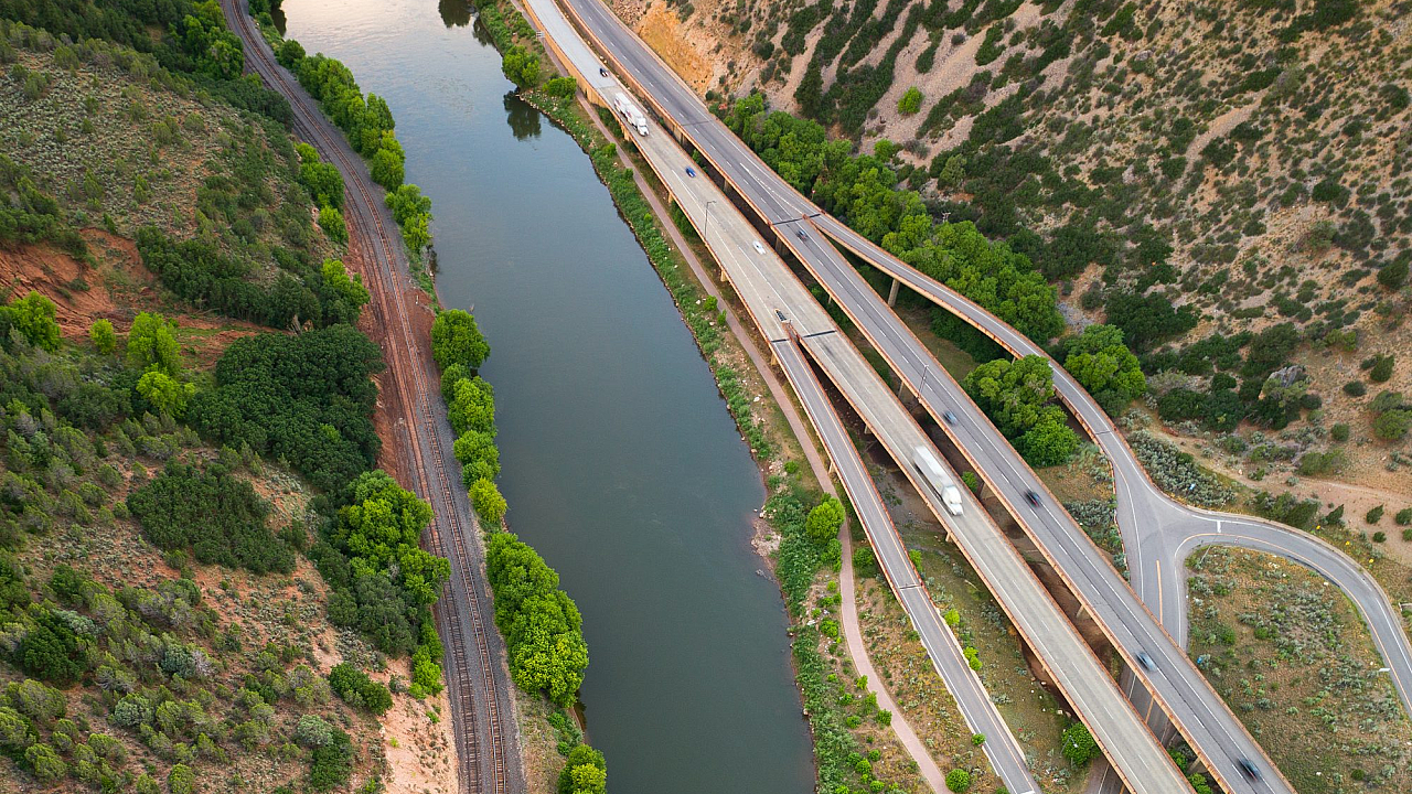aerial photography, cars, road, highway, traffic, transportation, vehicles, automobile, street, overhead, birds-eye view, high-angle shot, perspective, landscape, travel