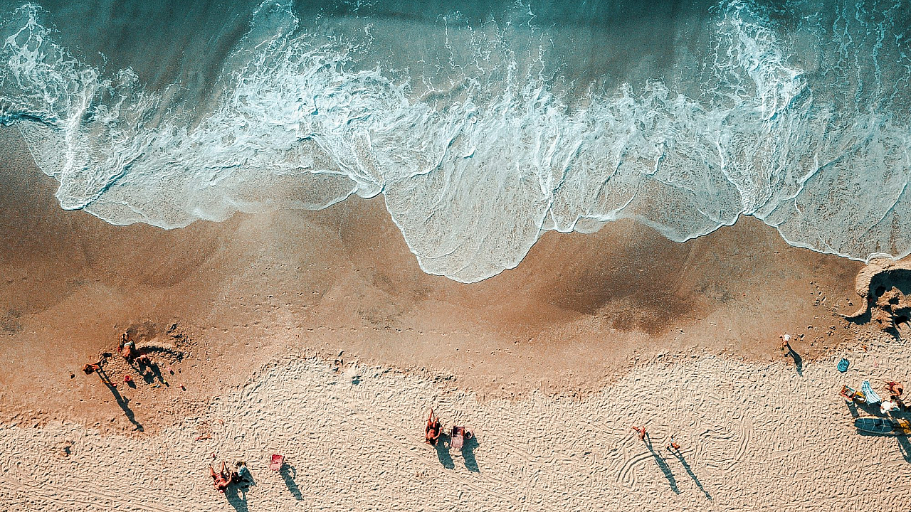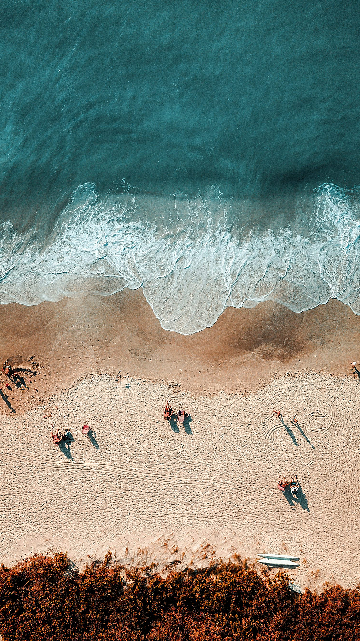Wallpaper Aerial Photography of People Near Shoreline