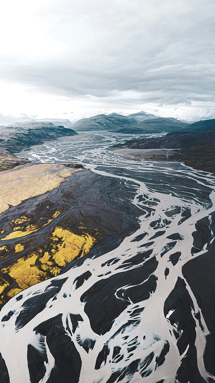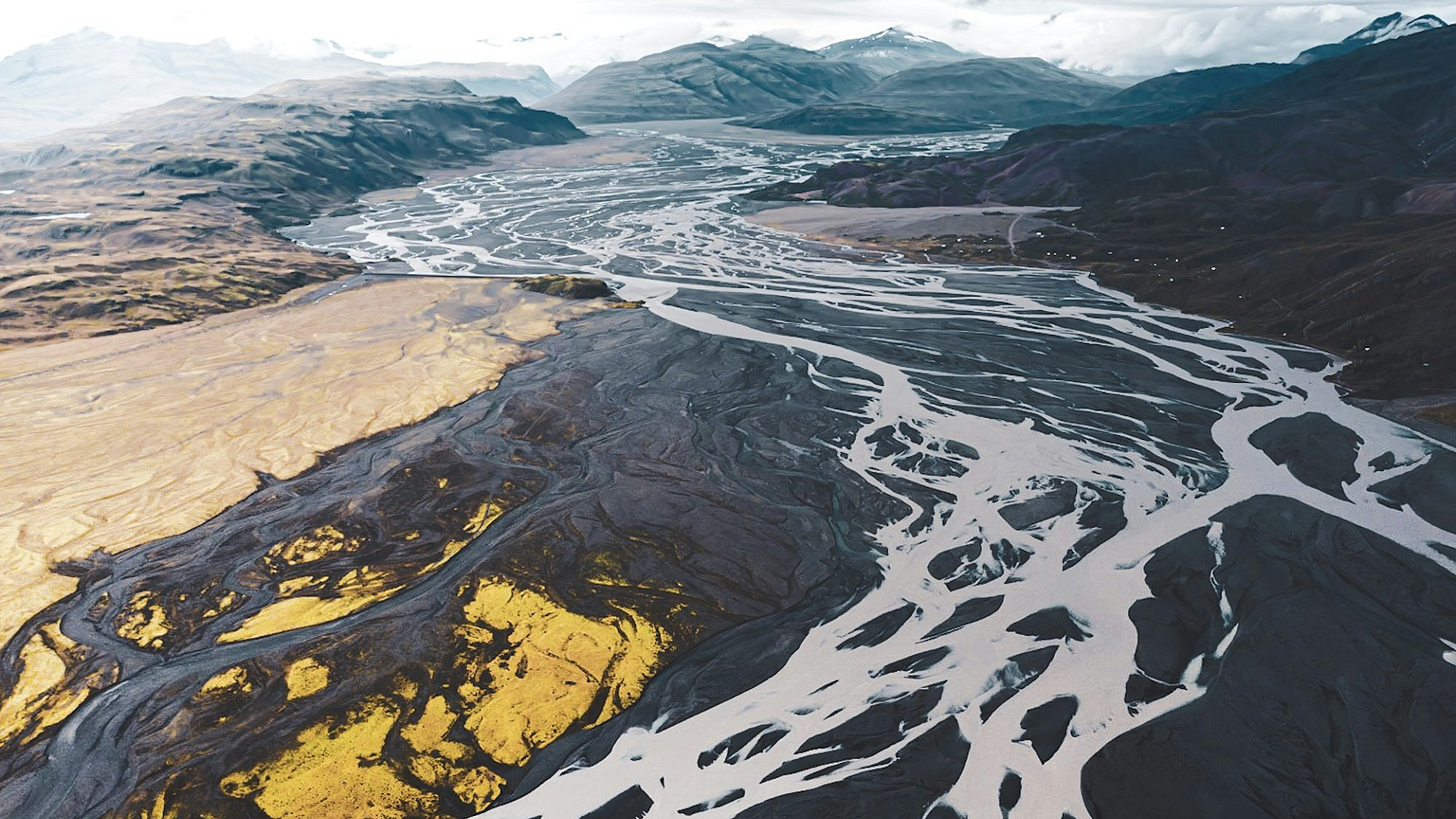 aerial view, mountains, black and white, monochrome, grayscale, cloudy sky, overcast, landscape, nature, scenery, high altitude, elevation, peaks, summit, hills, range