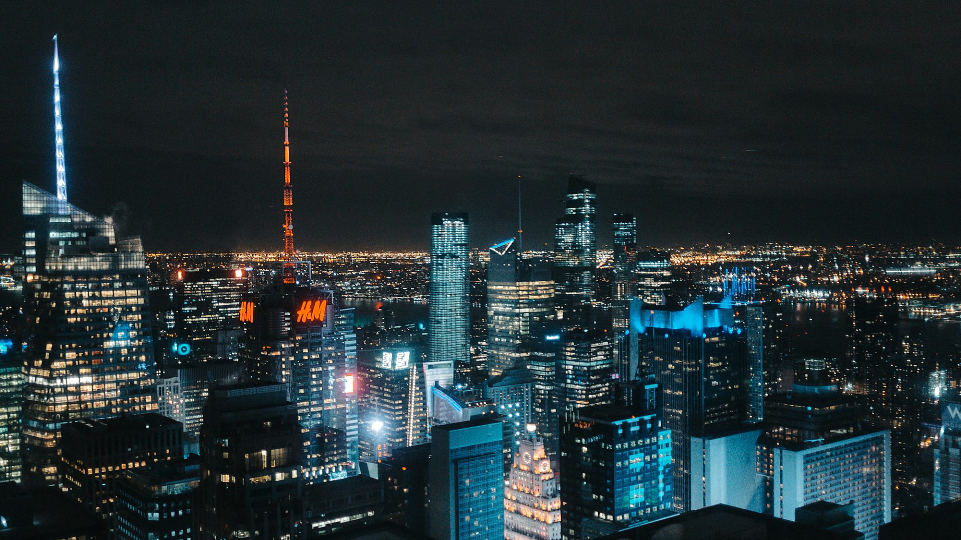 aerial view, night, city, buildings, skyscrapers, urban, night cityscape, high-rise, architecture, lights, illuminated, dark, cityscape, night photography, overhead view