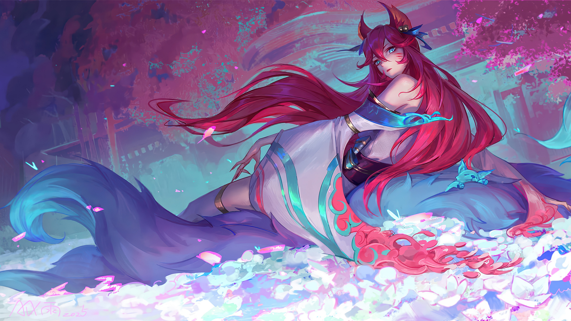 Ahri, Spirit Blossom Ahri, League of Legends, LoL, Wallpaper, Background, Art, Fan Art, Digital Art, Game Art, Spirit Blossom, Cherry Blossom, Floral, Nine-Tailed Fox, K/DA