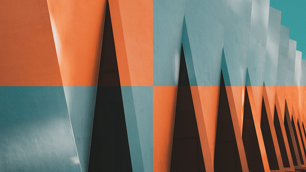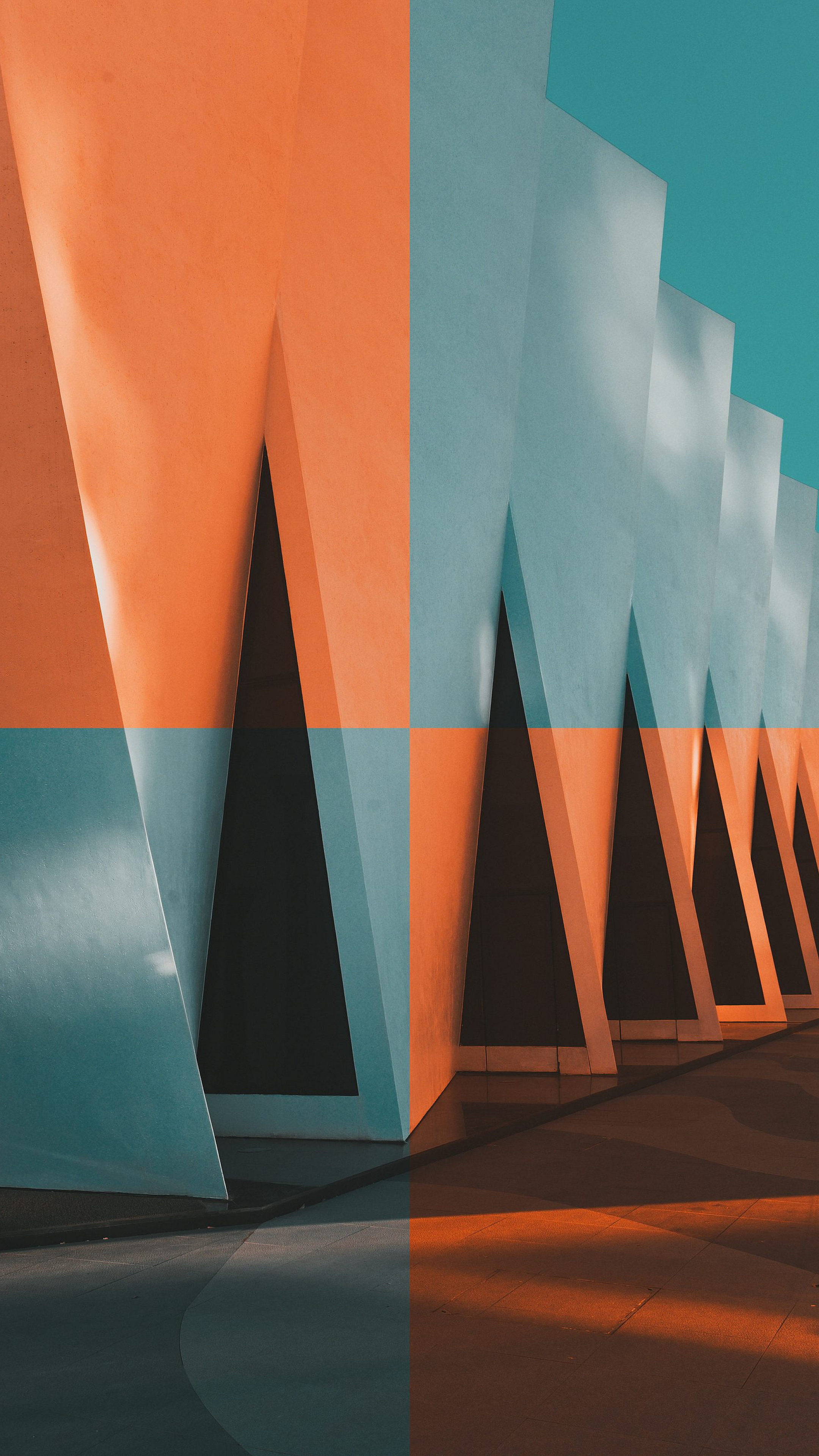abstract, wallpaper, orange, blue, building, architecture, geometric, shapes, color, design, modern, contemporary, artistic, photo, image