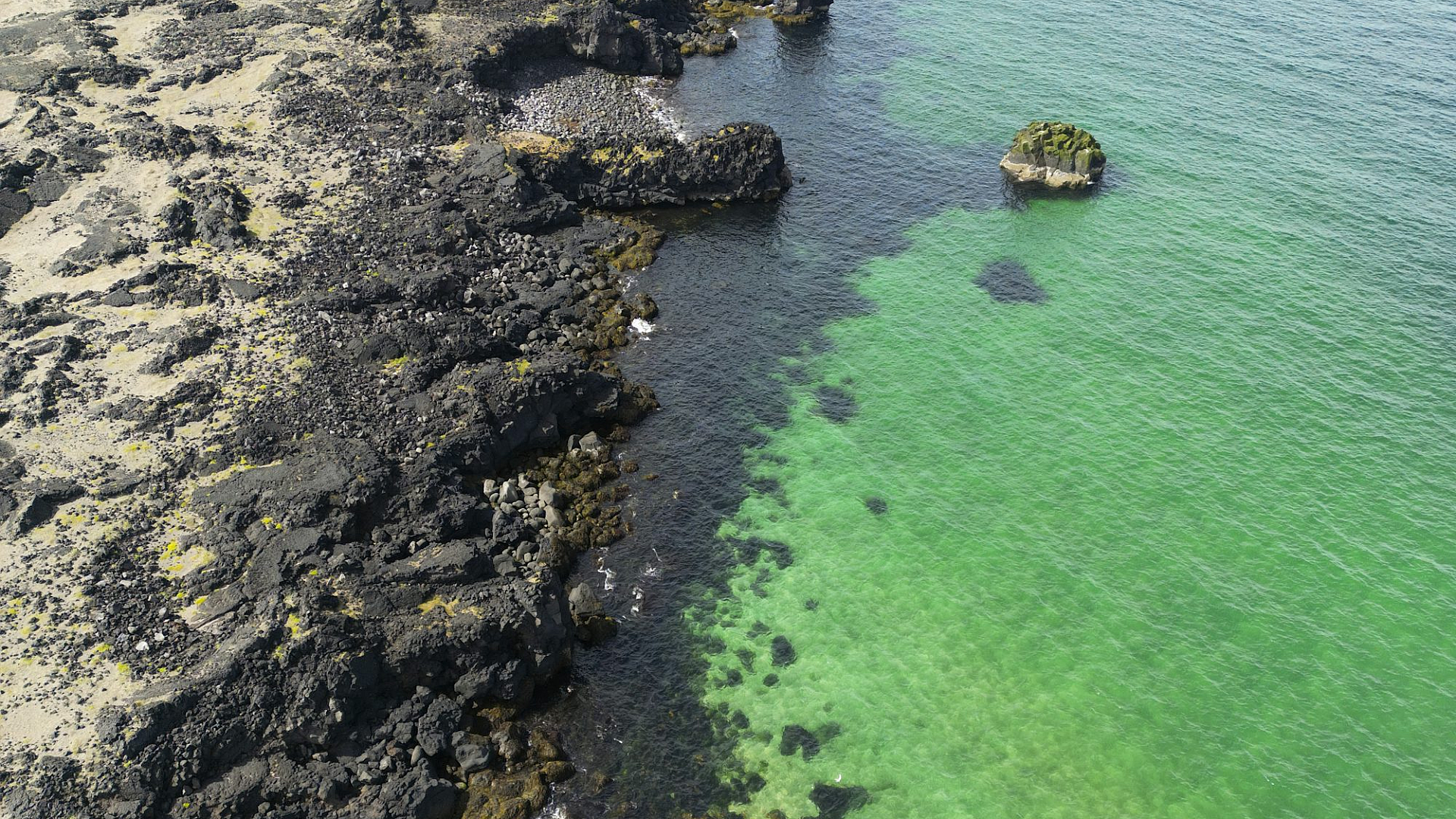 aerial view, bird’s-eye view, overhead view, island, islet, water, ocean, sea, lake, river, body of water, landscape, scenery, nature, tropical
