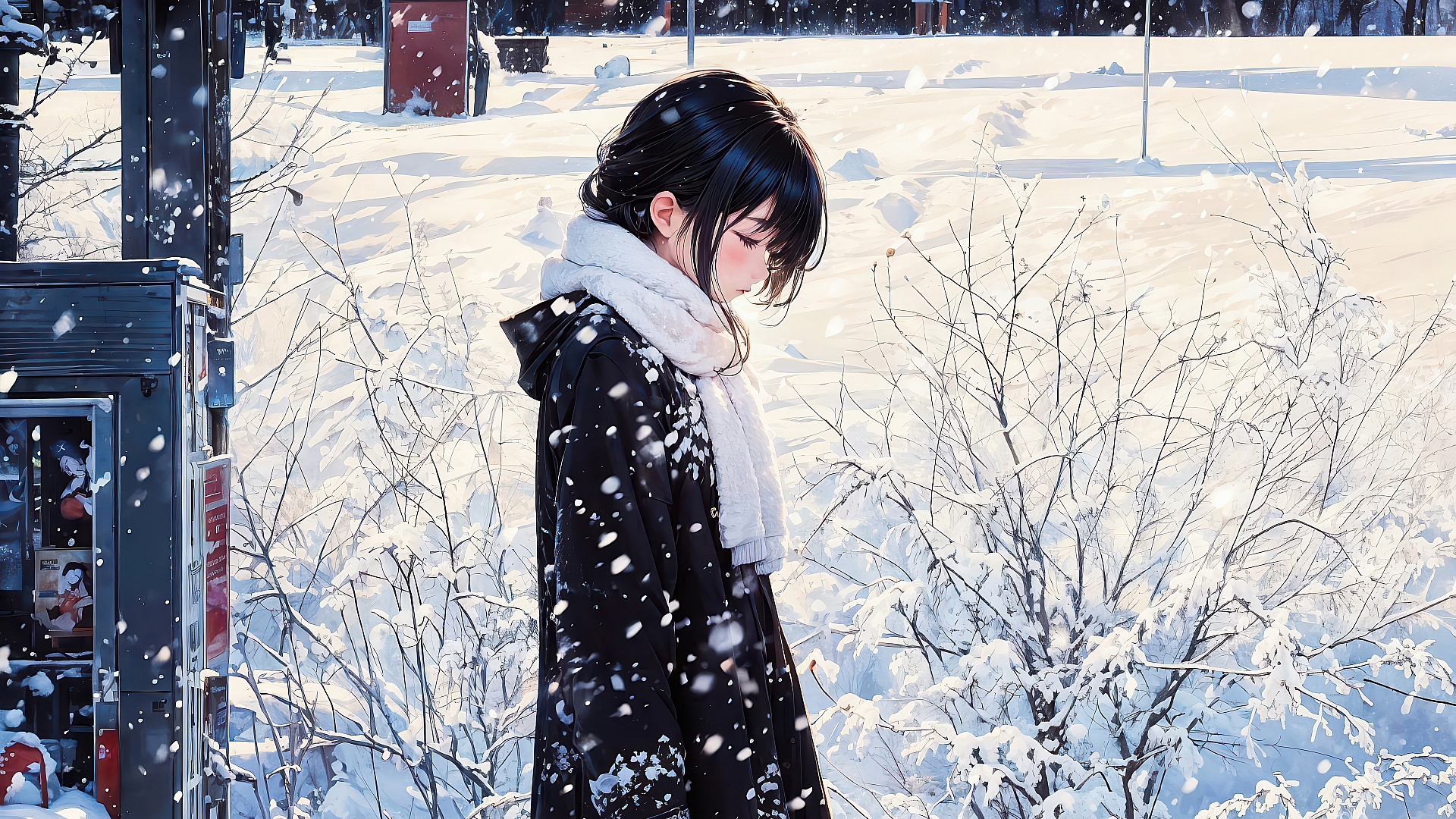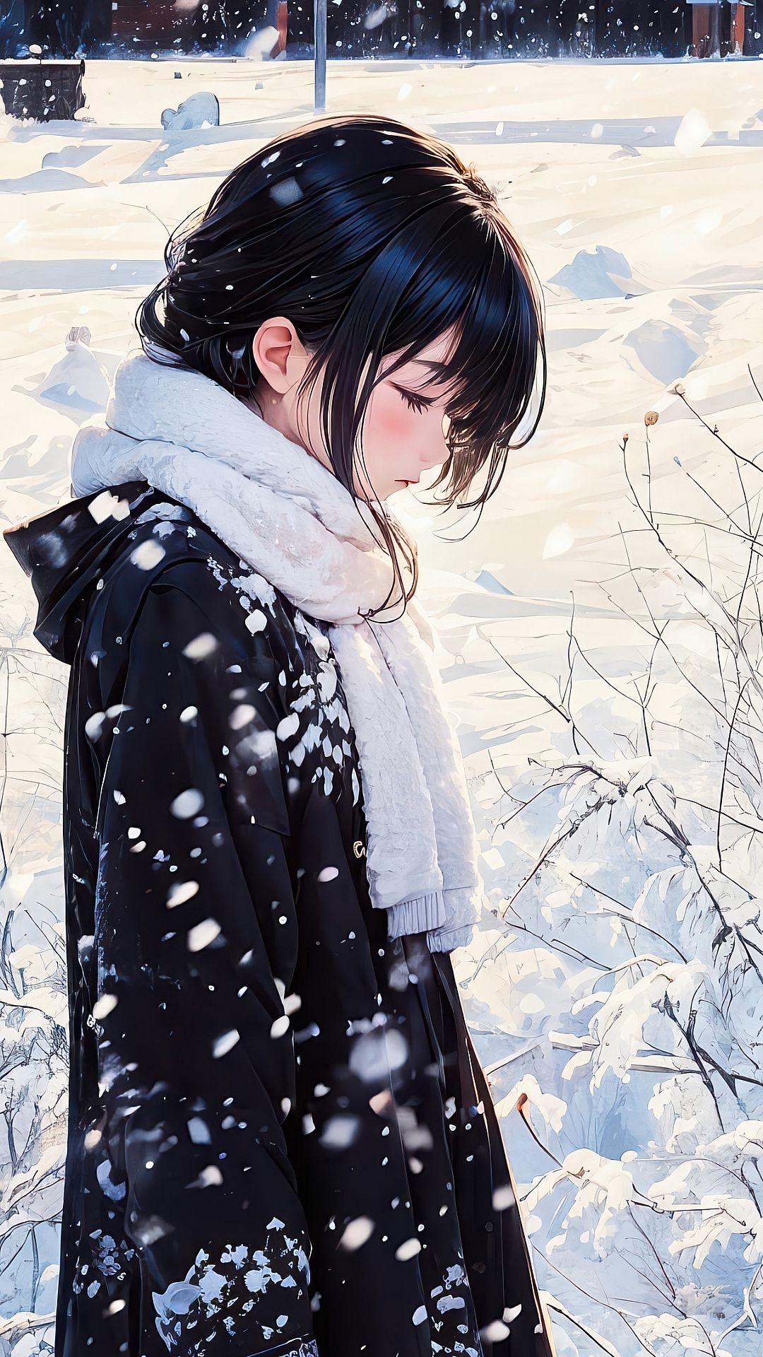 anime girl, snow, winter, alone, solitary, snowing, snowflakes, cold, isolated, lonely, beautiful, cute, wallpaper, background, winter scene