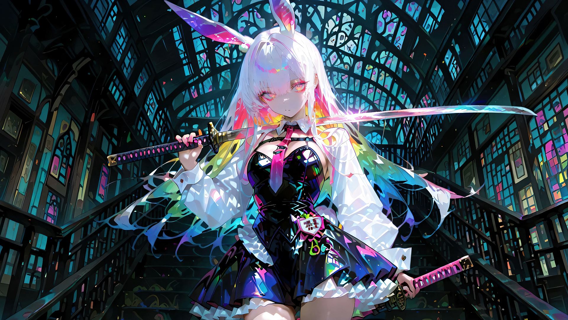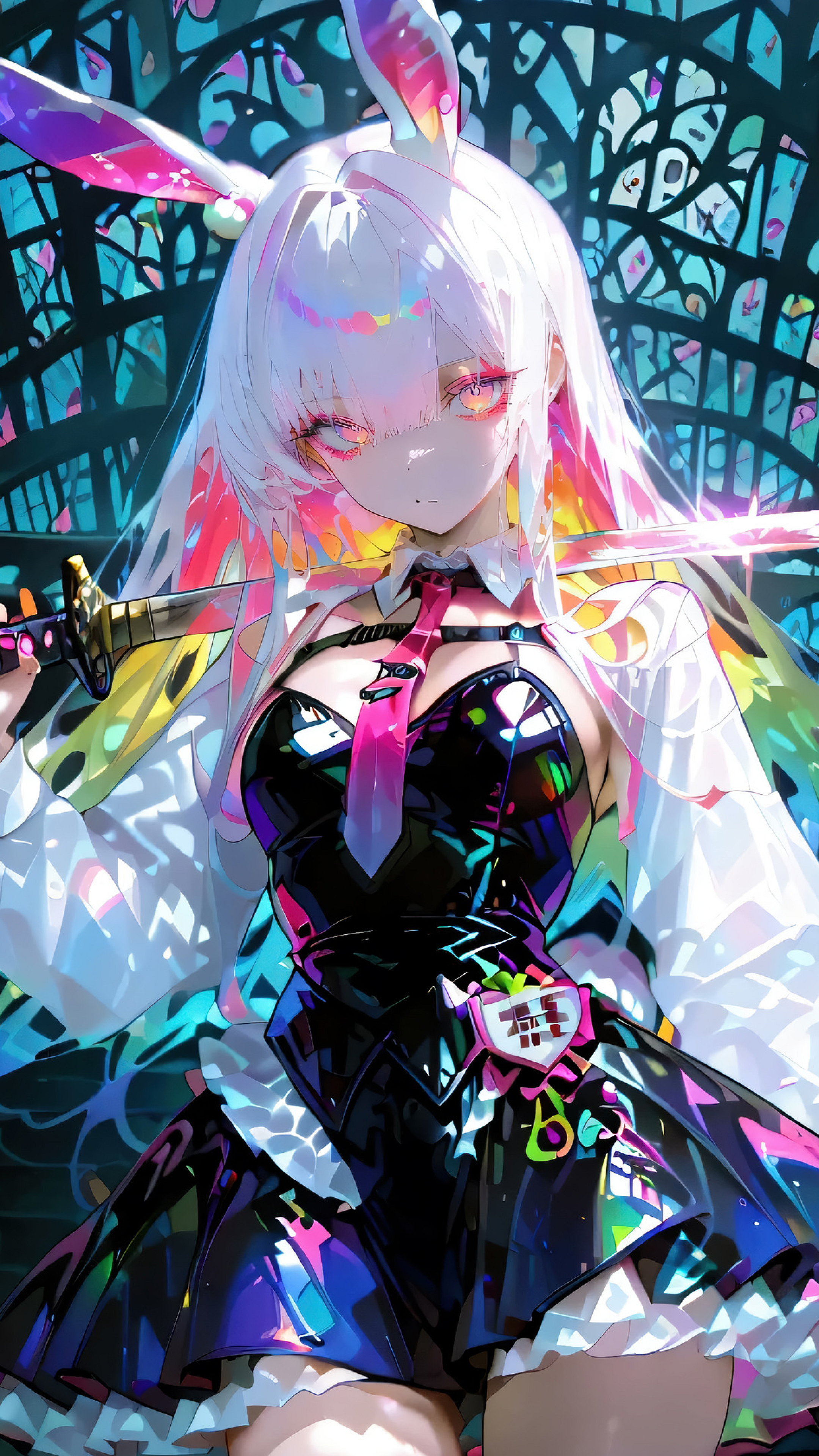 Anime girl, bunny ears, katana, sword, weapon, Japanese sword, cute girl, kawaii, anime wallpaper, bunny girl, weapon girl, girl with katana, anime art, illustration, fantasy art