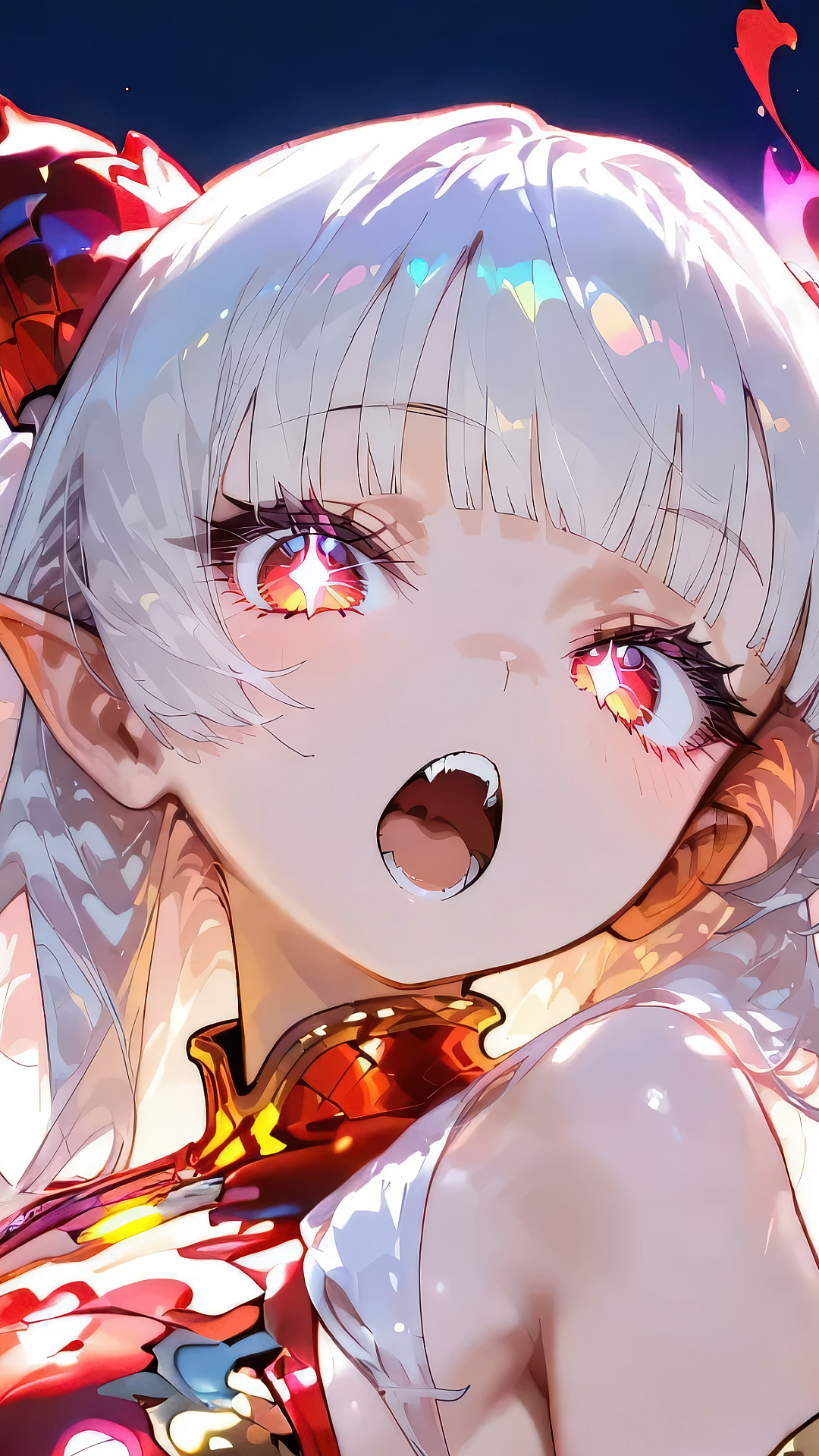 Anime girl, dragon horn, wings, fantasy, wallpaper, background, desktop wallpaper, phone wallpaper, digital art, illustration, anime art, dragon wings, horned girl, mythical creature, magical girl