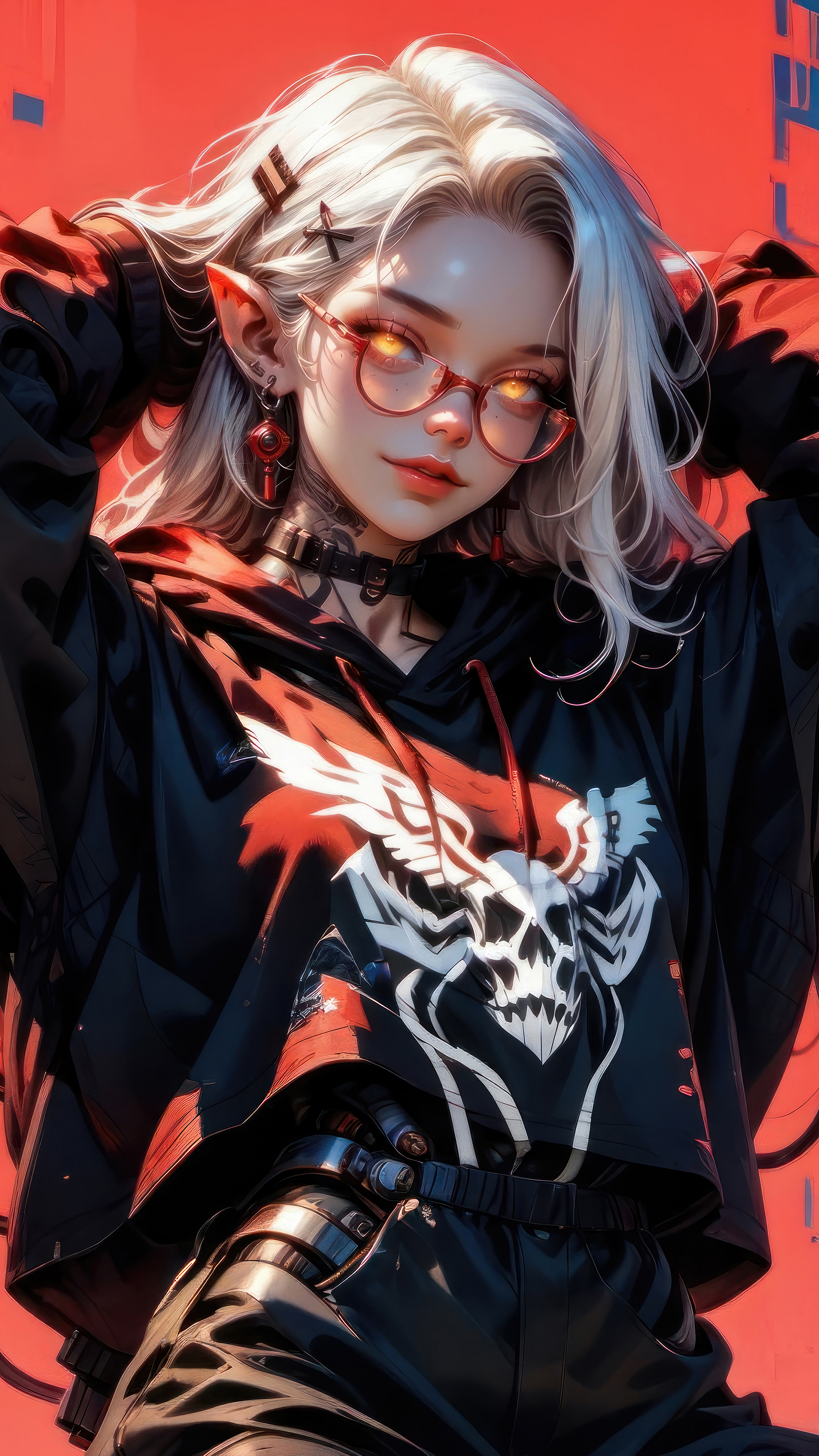 Anime girl, elf, cyberpunk, fantasy, sci-fi, futuristic, technology, digital art, virtual reality, neon, cybernetic, augmented reality, magical girl, high tech, fantasy cyberpunk