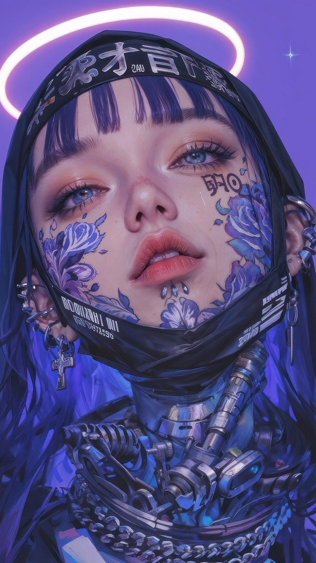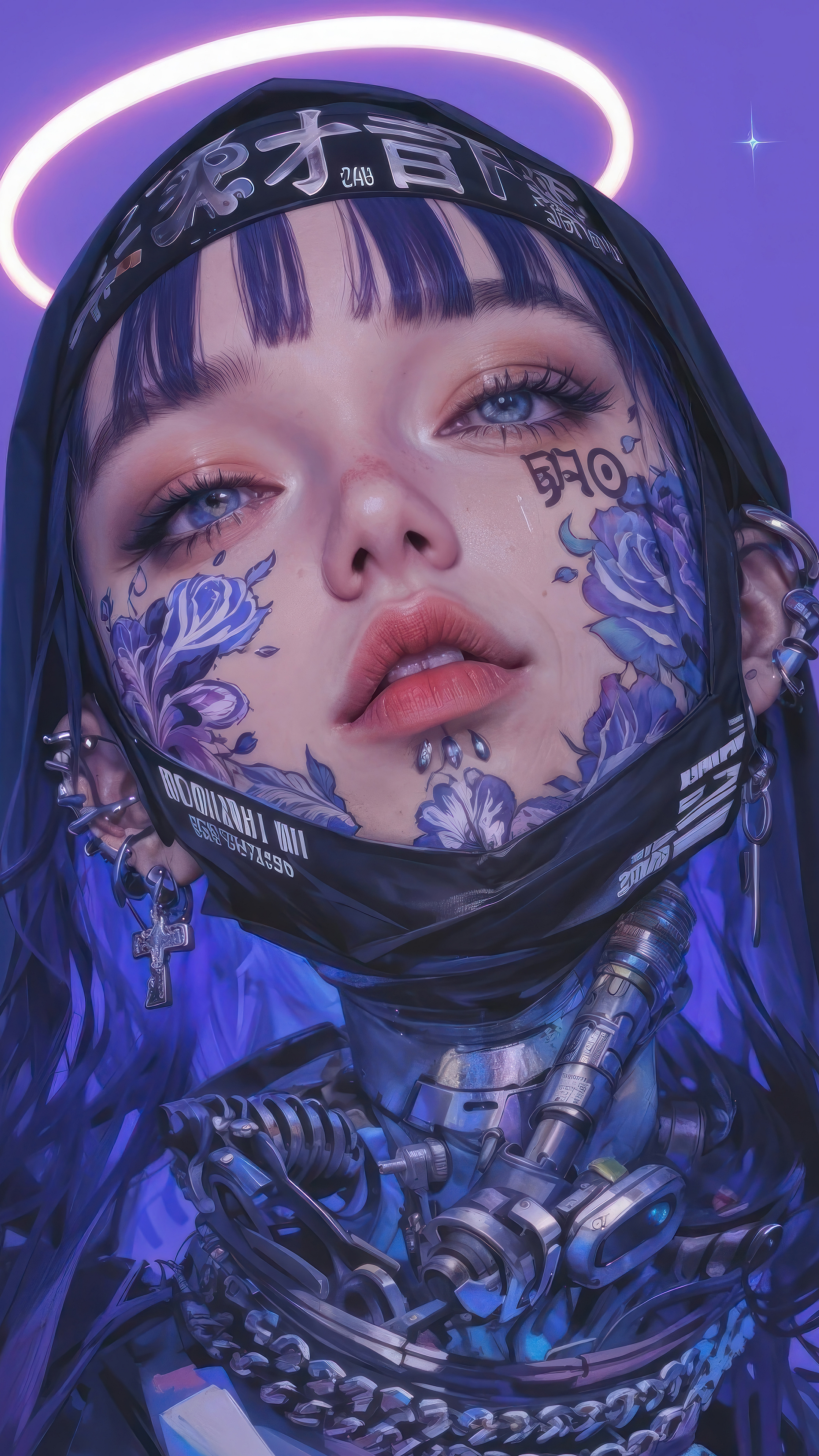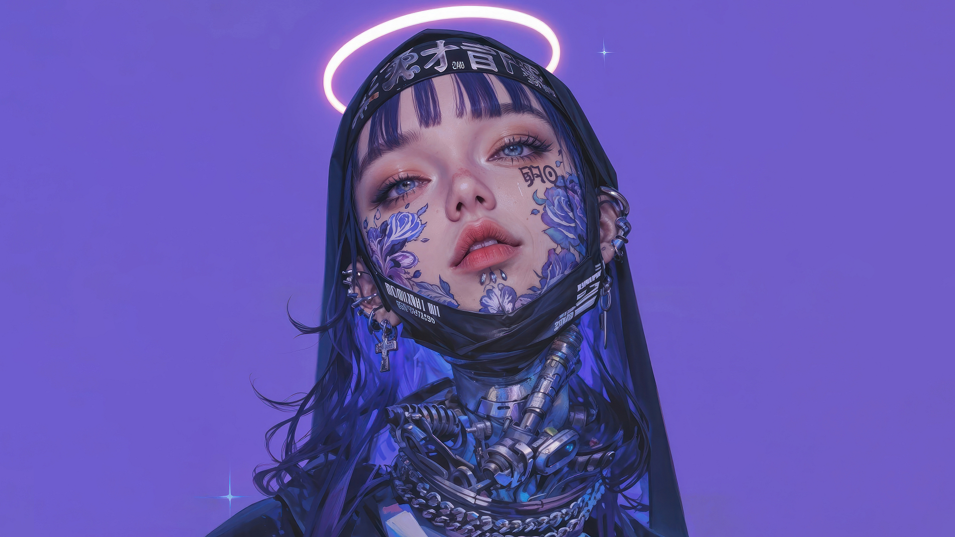 anime girl, tattoo, mask, nun, wallpaper, anime wallpaper, girl wallpaper, tattoo wallpaper, mask wallpaper, nun wallpaper, face tattoo, religious tattoo, anime nun, masked girl, anime face