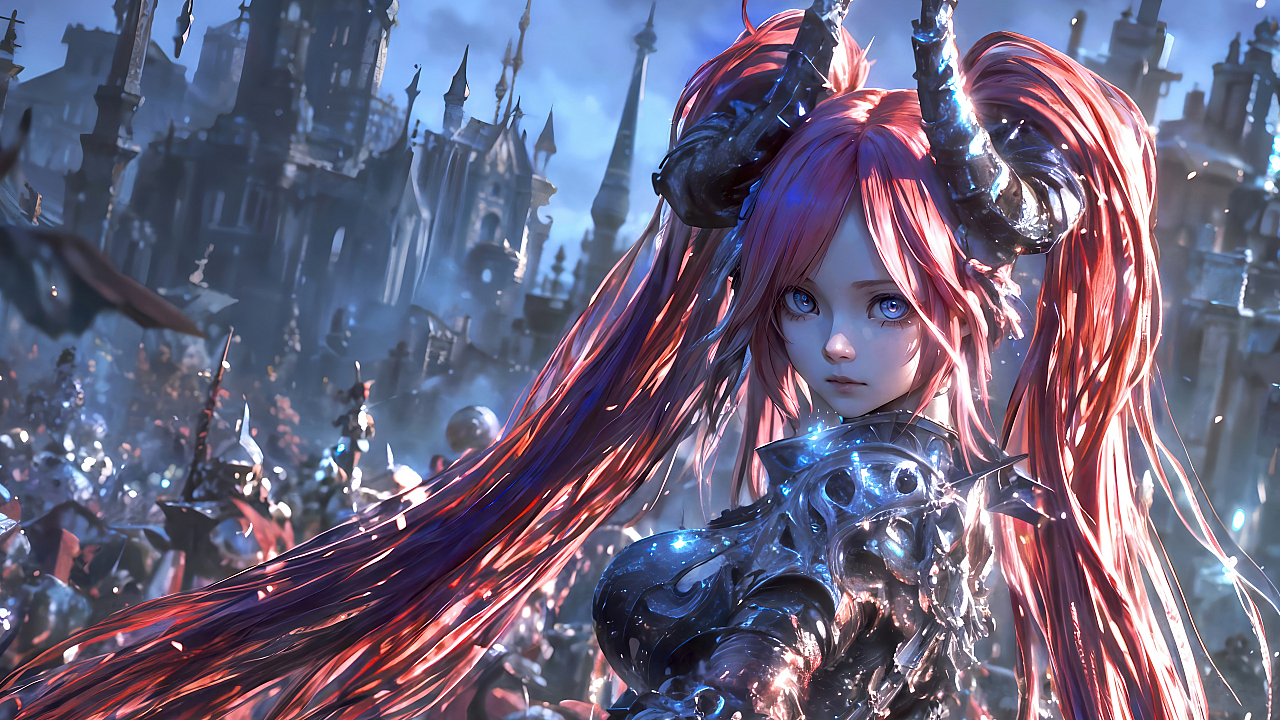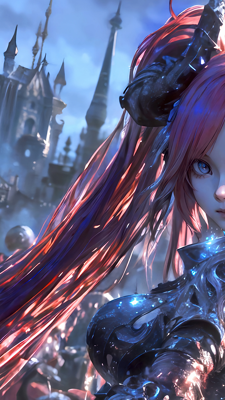 anime girl, fantasy warrior, horned girl, fantasy art, digital art, wallpaper, background, anime wallpaper, fantasy wallpaper, warrior girl, horned anime girl, demon girl, elf girl, magical girl, fantasy character
