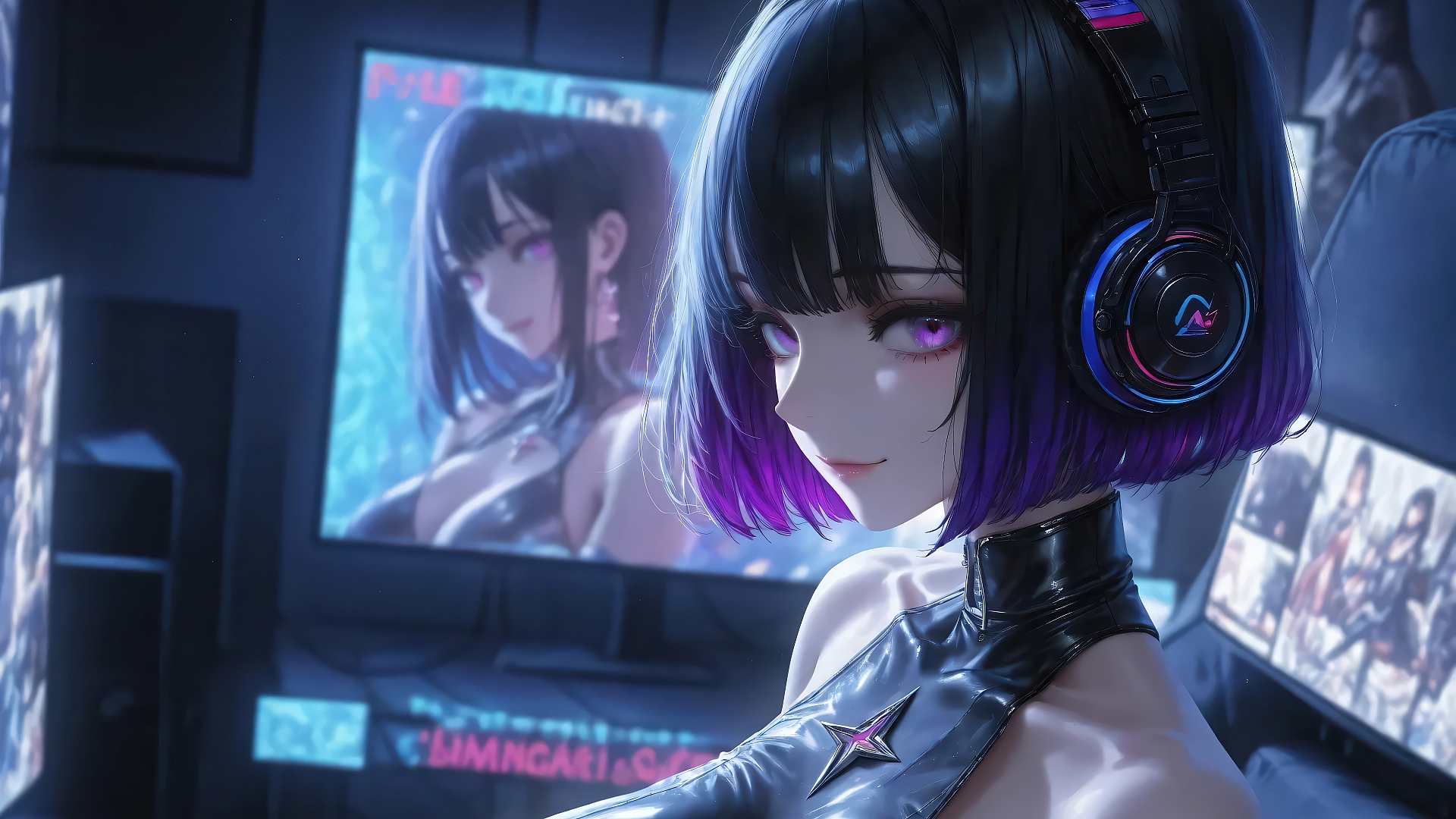 anime girl, headphones, wallpaper, background, desktop wallpaper, phone wallpaper, cute anime girl, anime headphones, kawaii, anime art, digital art, illustration, headphone girl, anime aesthetic, listening to music