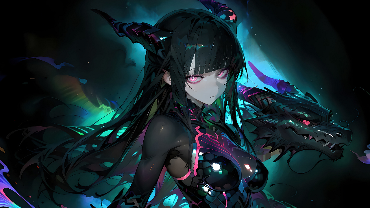 Anime girl, horned dragon, dragon girl, fantasy girl, mythical creature, wallpaper, background, desktop wallpaper, phone wallpaper, anime wallpaper, dragon art, girl with dragon horns, fantasy art, digital art, cute dragon
