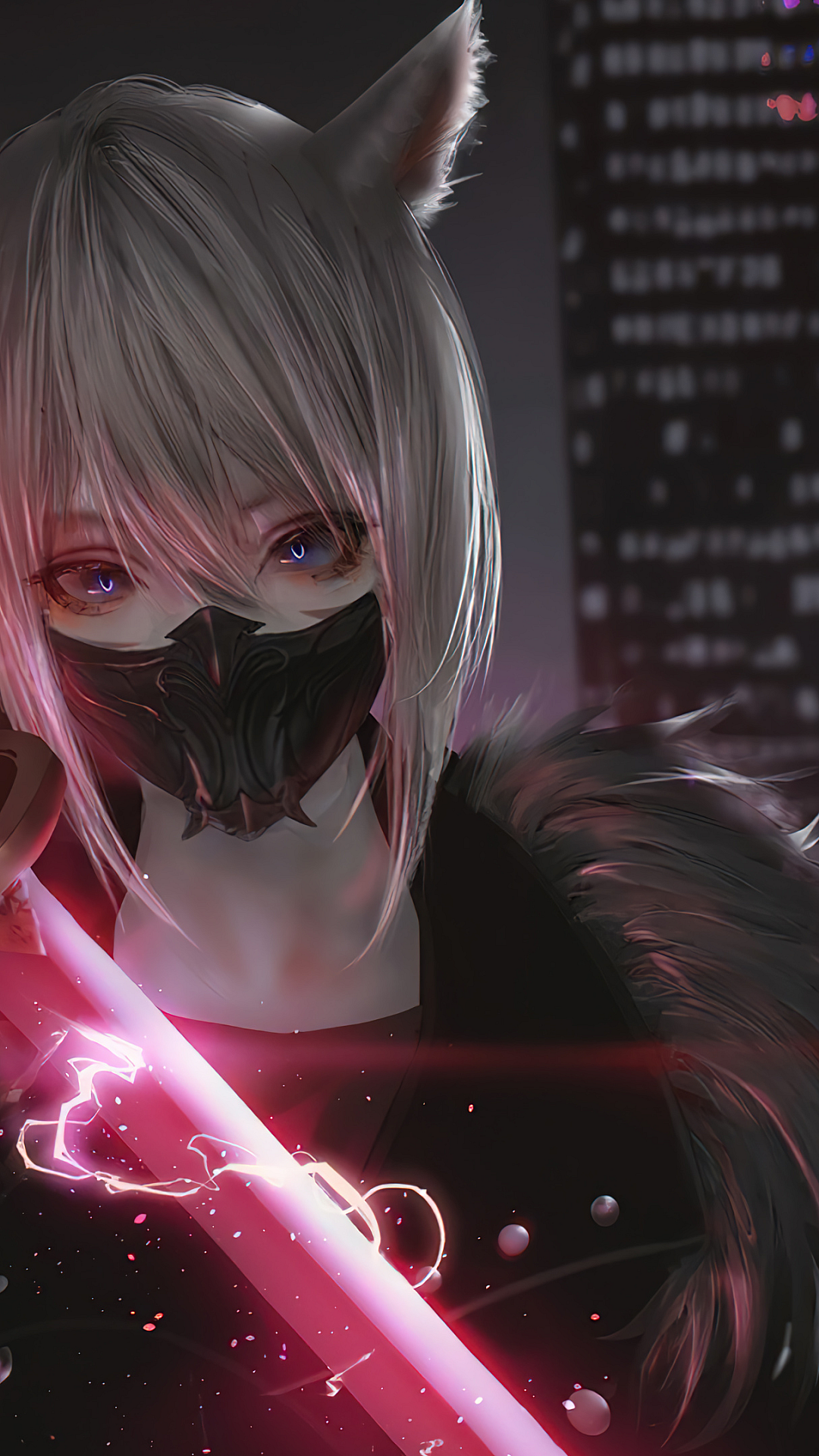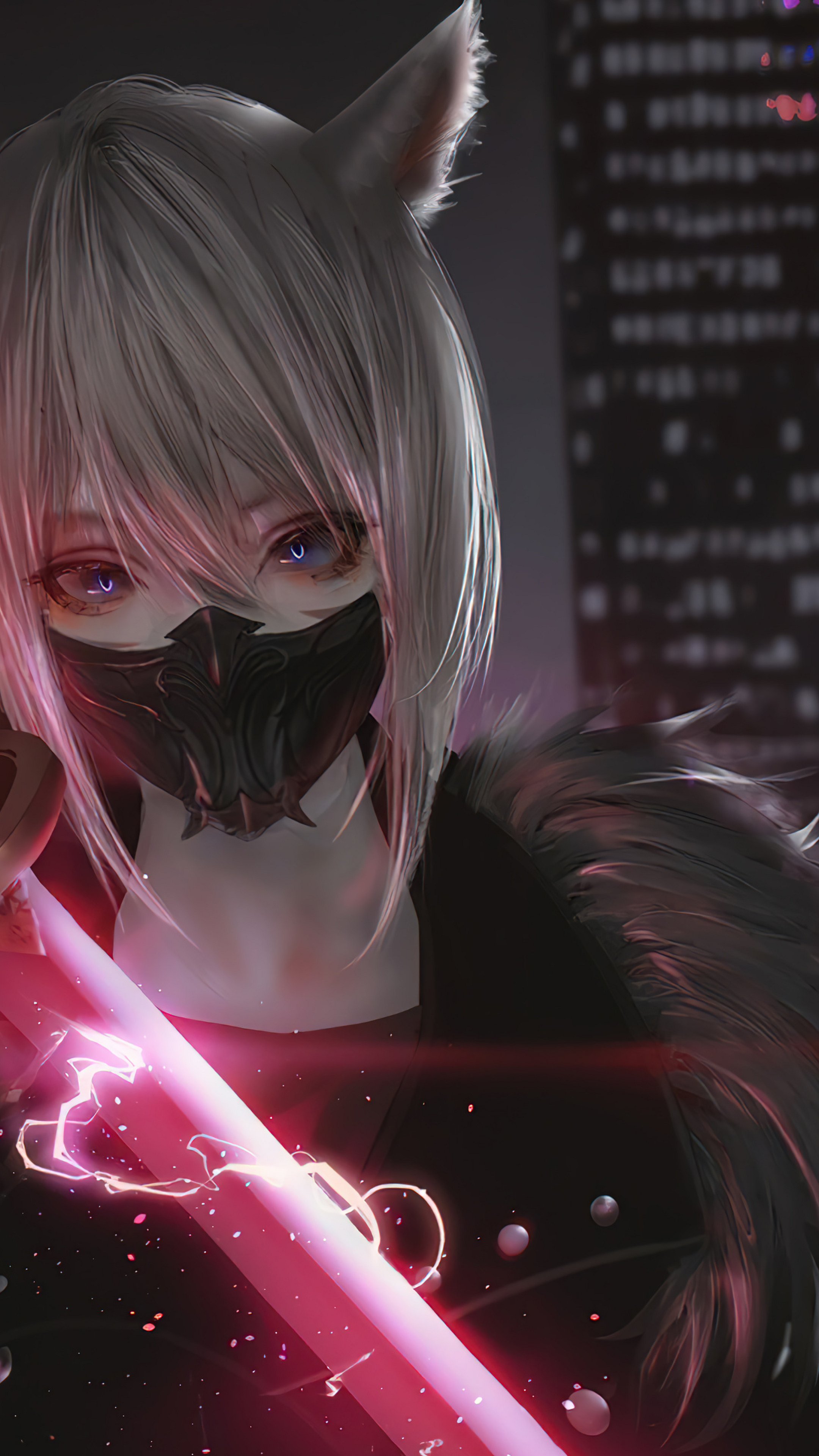 Anime girl, katana, sword, sci-fi, science fiction, futuristic, cyberpunk, space, technology, warrior, samurai, blade, wallpaper, background, digital art, illustration, fantasy
