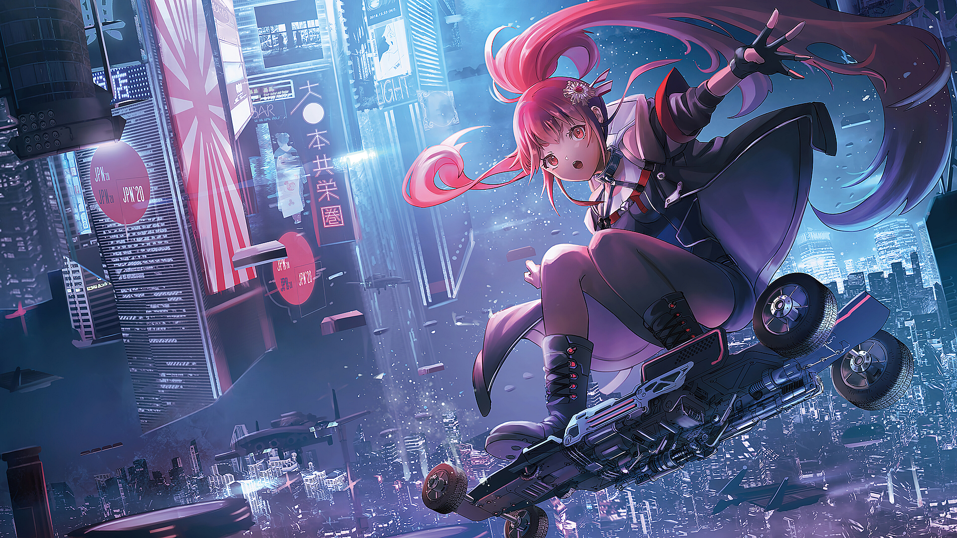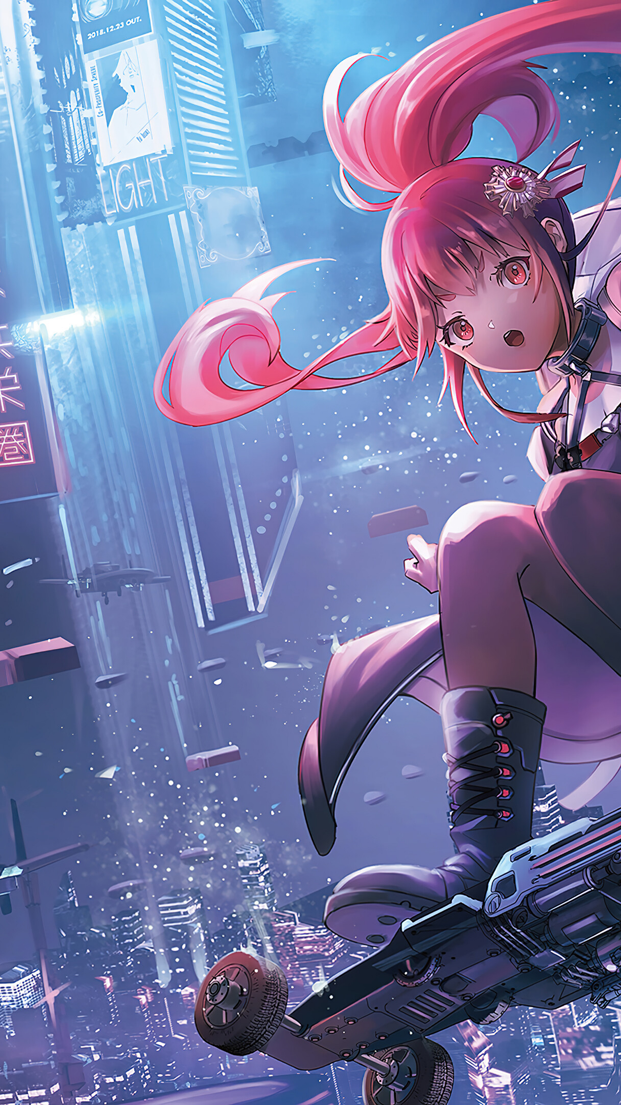 Anime girl, sci-fi, city, cyberpunk, futuristic, neon, wallpaper, background, digital art, fantasy, technology, mecha, robot, urban, space