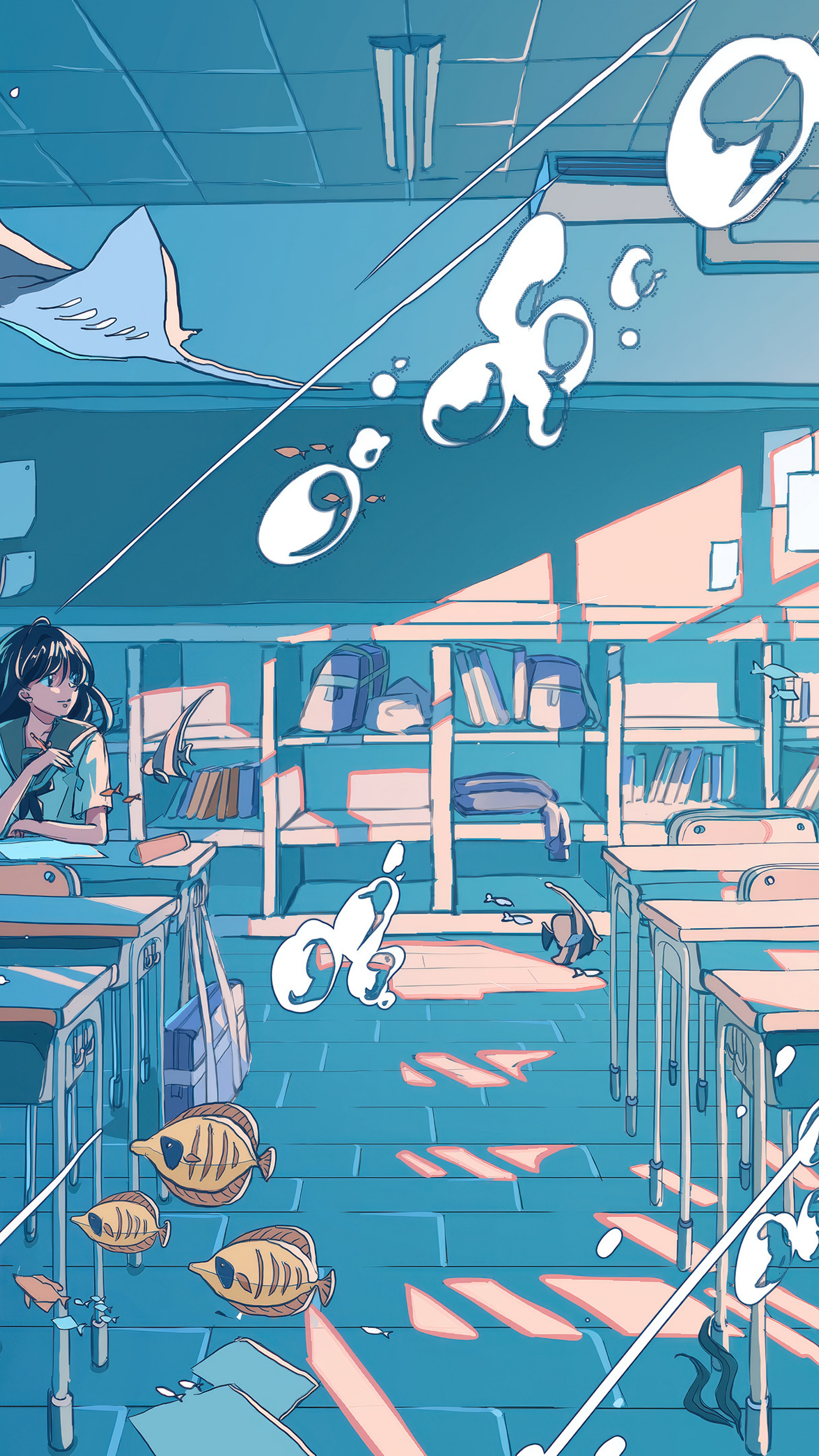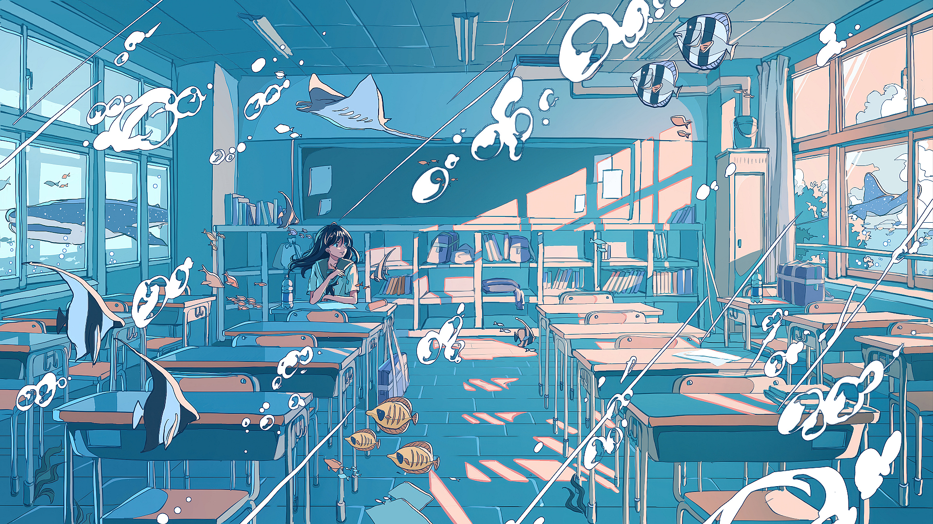 anime girl, student, classroom, school, wallpaper, background, desktop, cute, kawaii, adorable, schoolgirl, uniform, manga, illustration, teen