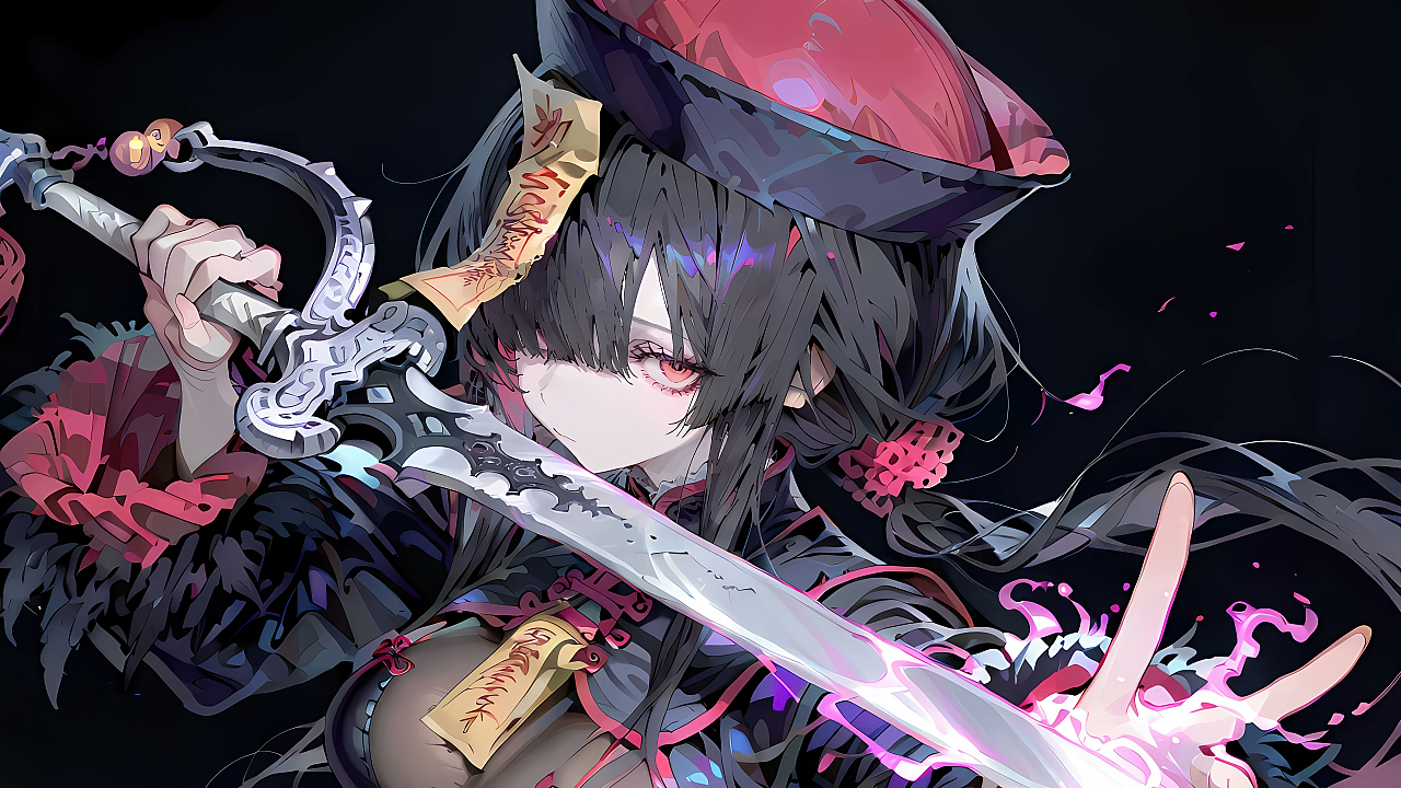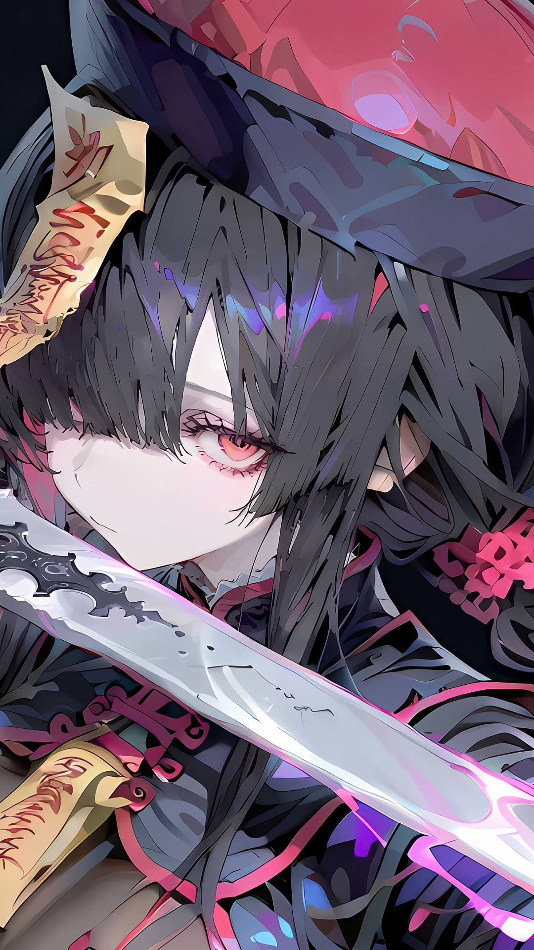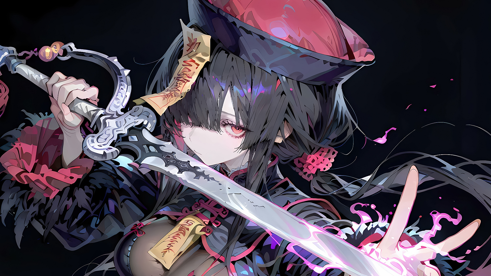 Anime girl, sword, jiangshi, zombie, undead, chinese zombie, hopping vampire, fantasy, girl with sword, anime wallpaper, dark fantasy, macabre, supernatural, action, beautiful