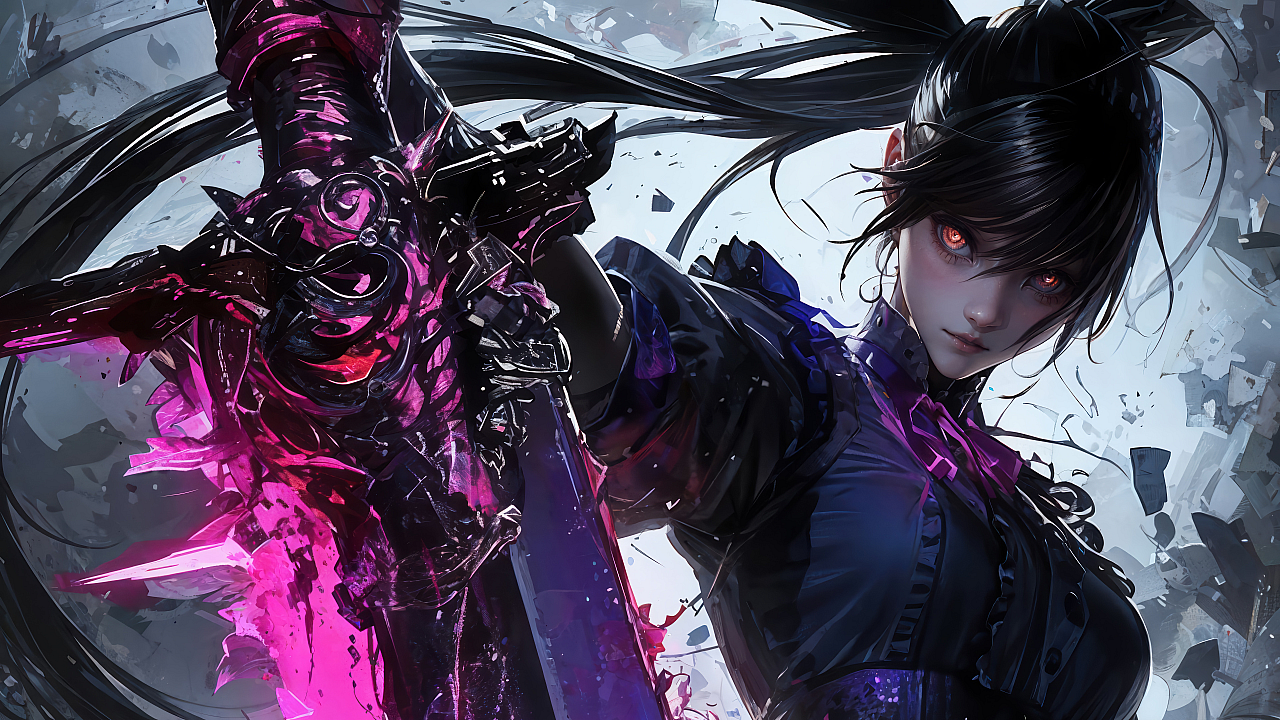 Anime girl, warrior, sword, fantasy, swordswoman, female warrior, fantasy art, anime wallpaper, digital art, game art, magical girl, knight, heroine, battle, combat