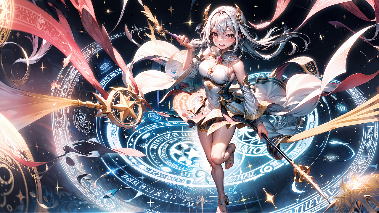 Anime girl, wizard, magic, witch, sorceress, spellcaster, fantasy, magical girl, enchantress, kawaii, cute, adorable, beautiful, wallpaper, background