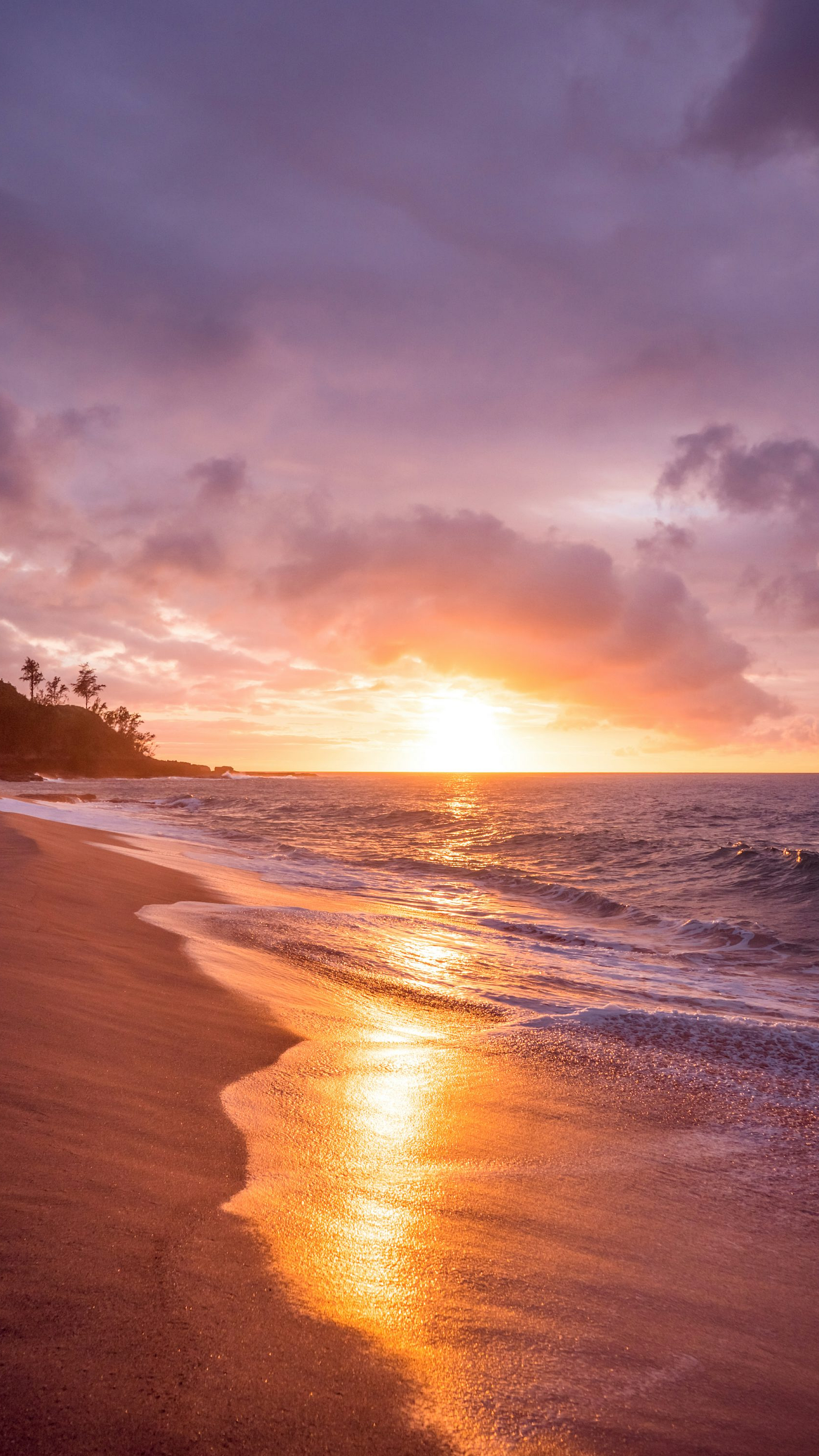 beach, seashore, sunset, ocean, sea, coast, shoreline, sand, waves, water, horizon, twilight, golden hour, sun rays, landscape