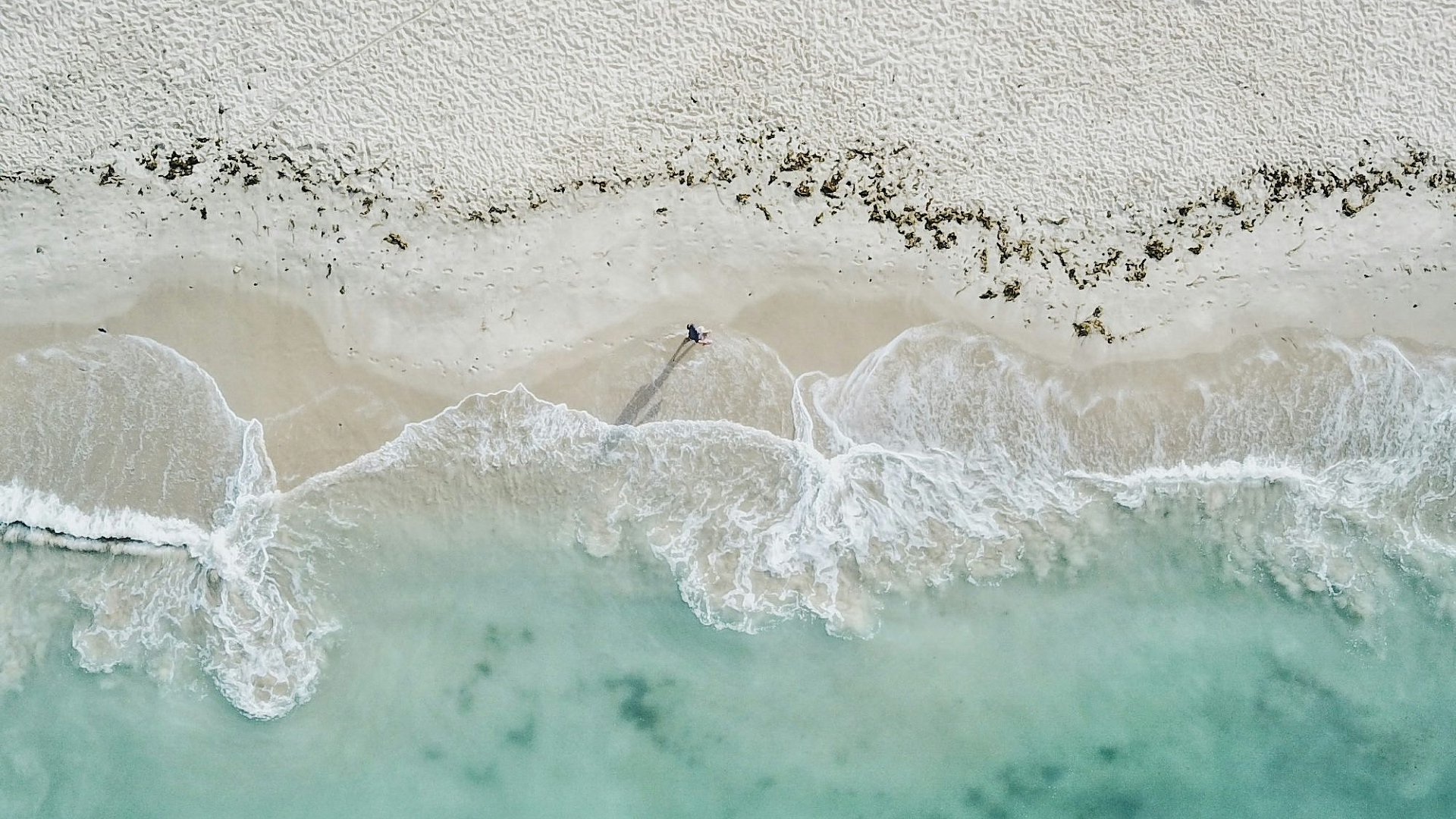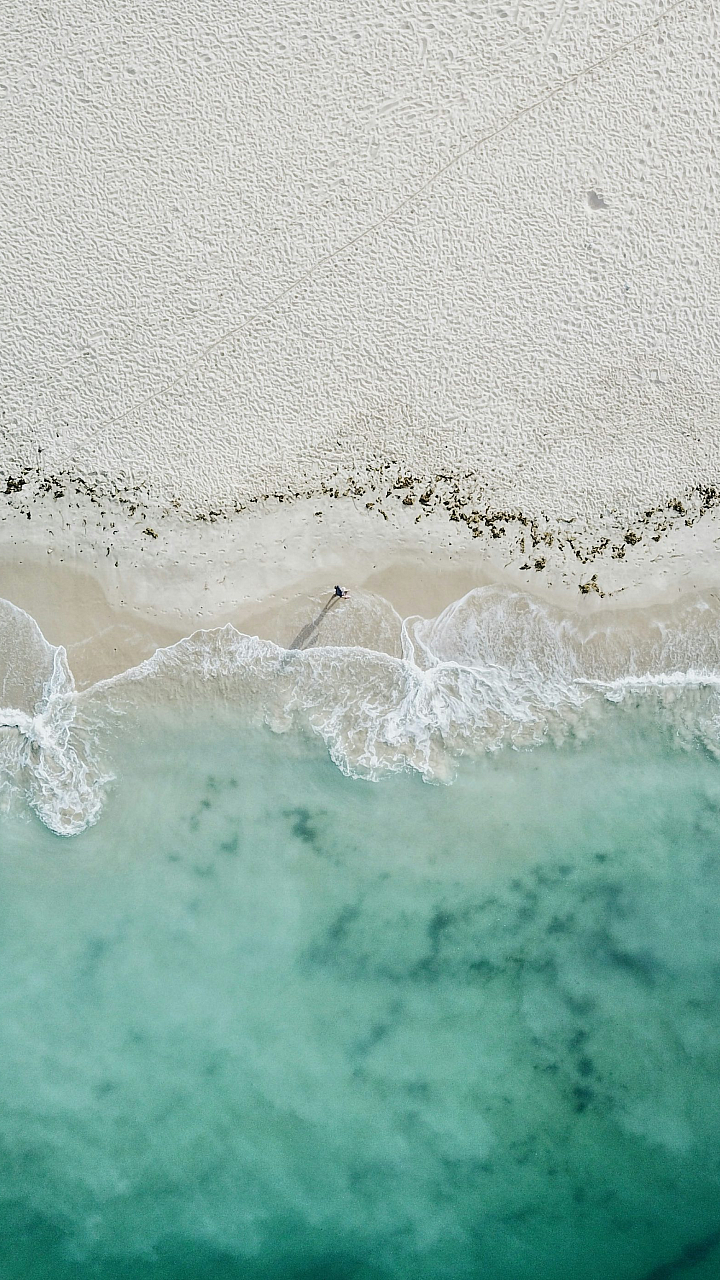 bird’s eye view, aerial photography, coastal landscape, seascape, ocean view, person on beach, lone figure, standing person, coastline, shoreline, beach, sea, ocean, overlook, perspective