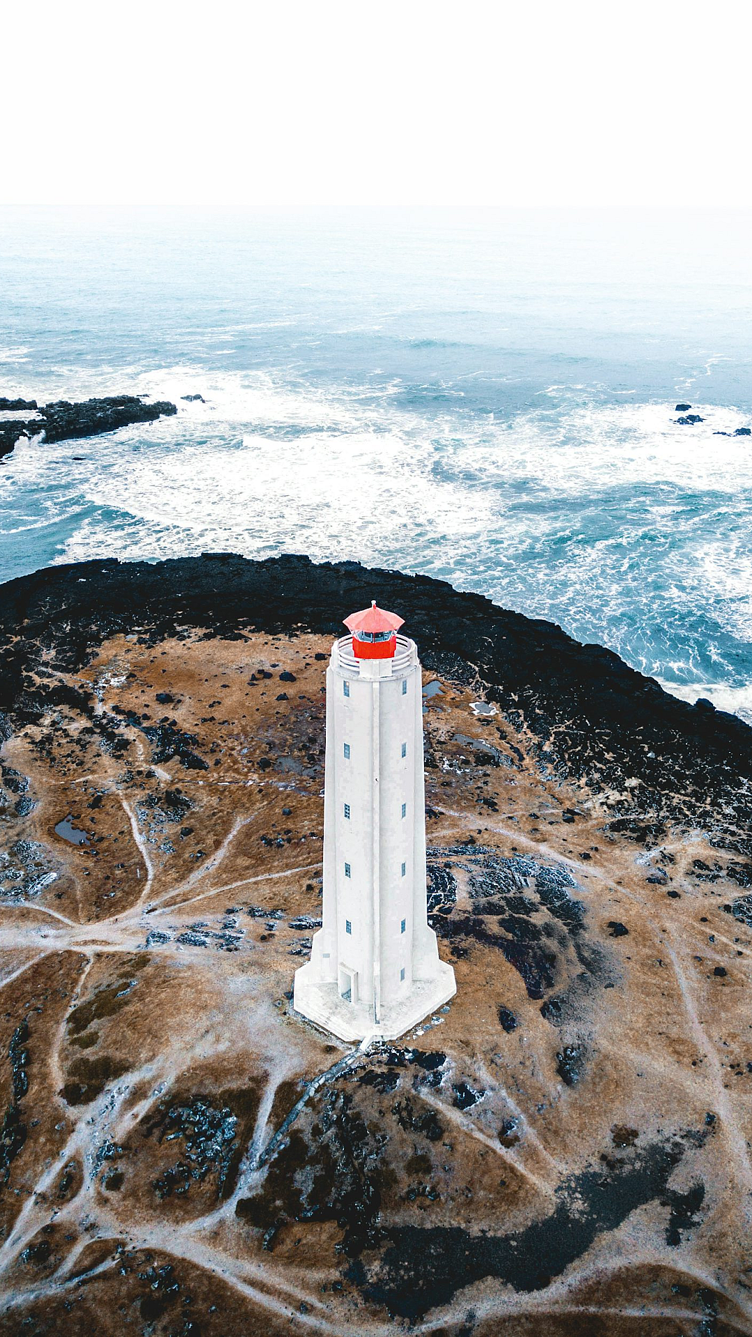 bird’s eye view, lighthouse, ocean, sea, white, tower, aerial photography, coastal, seascape, landscape, architecture, navigation, beacon, water, sky