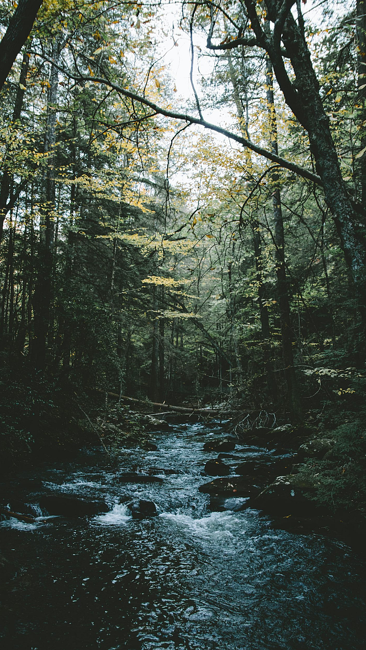 Wallpaper Body of Water Between Trees