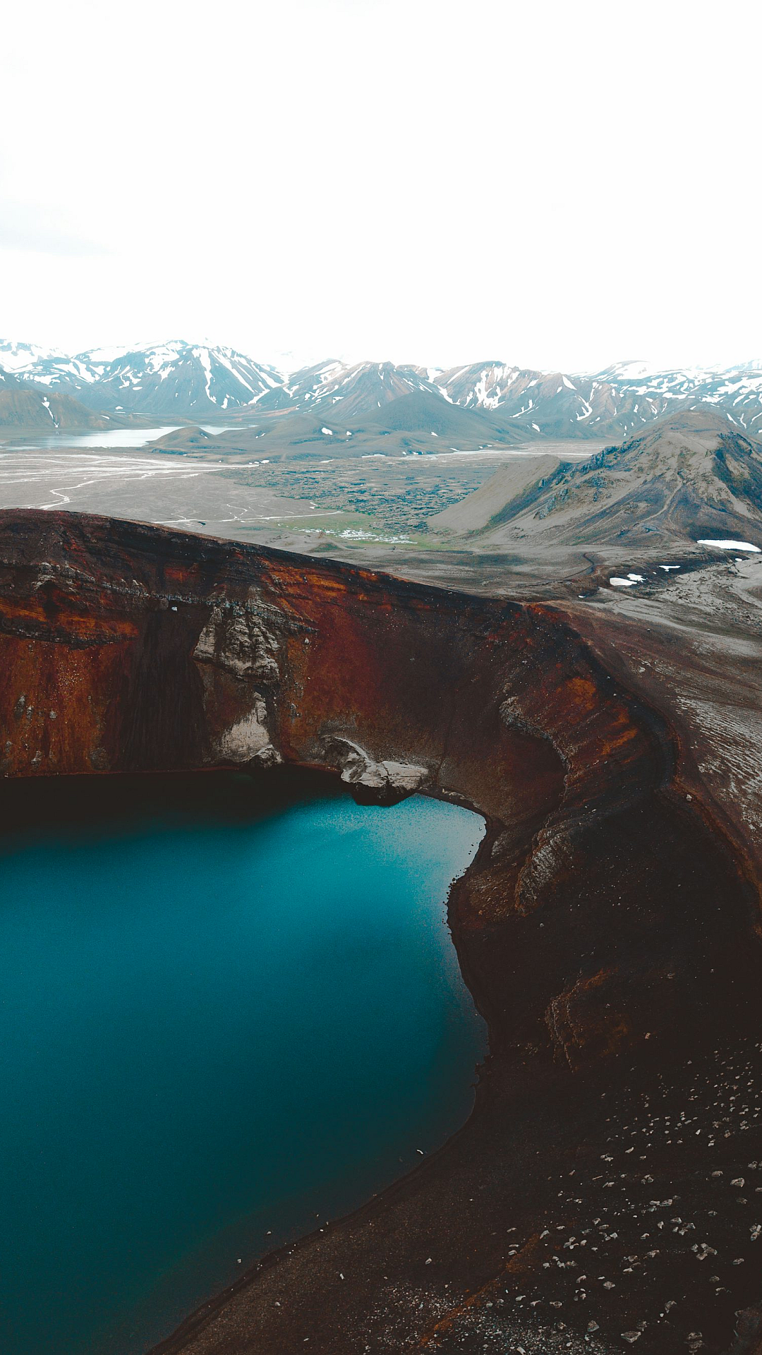 Wallpaper Body of Water Near Mountain with Distant Snow-Capped Peak